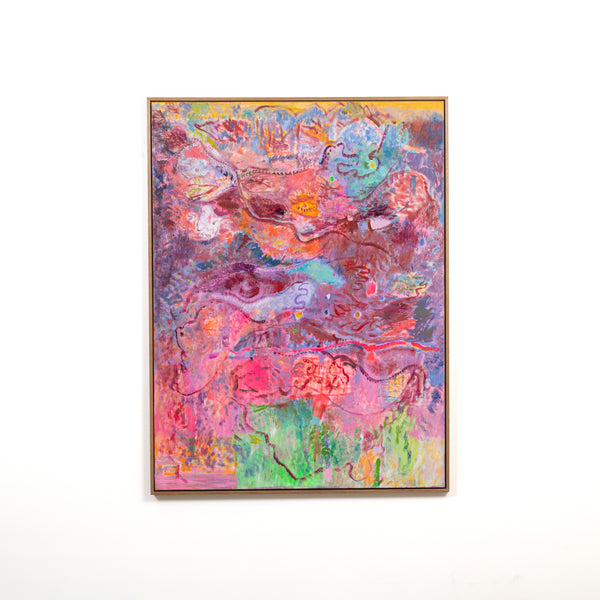 Amber Stokie creates rich and provocative paintings that reflect her inner world and the broader human experience. Personal symbolic iconography often emerges in her paintings, enabling her to create playful and imaginative responses to life’s unpredictable nature, extending an invitation to experience a sense of optimism and wonder. Marked by an openness to revision and re-imagination, each series of work directly informs the next as Stokie embraces experimentation and stylistic diversion.
