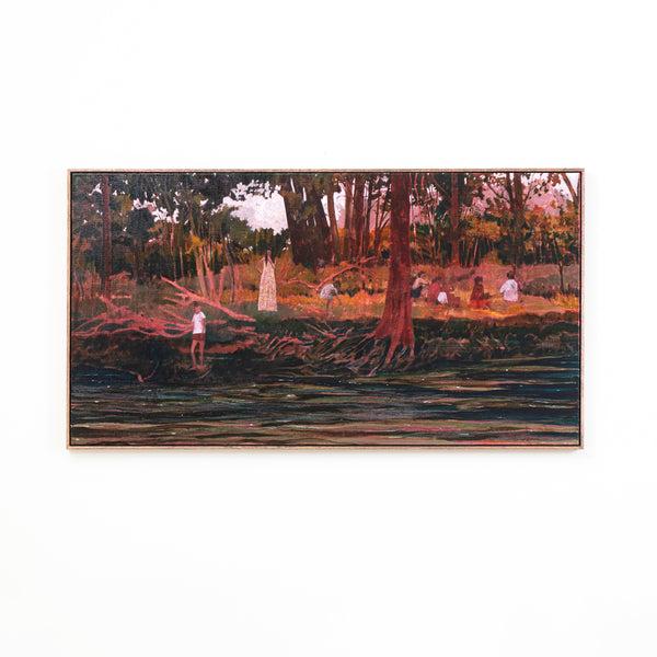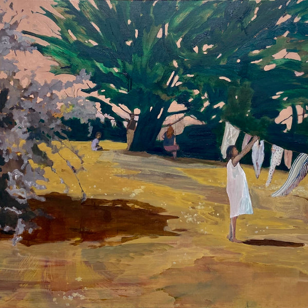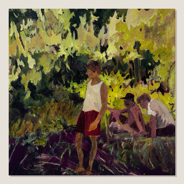 Although there is a strong autobiographical nature to his work, Ben’s paintings have the feel of a dream or memory that has flickered into his mind, colours heightened and details slightly obscured; a feeling that is both familiar and surreal.