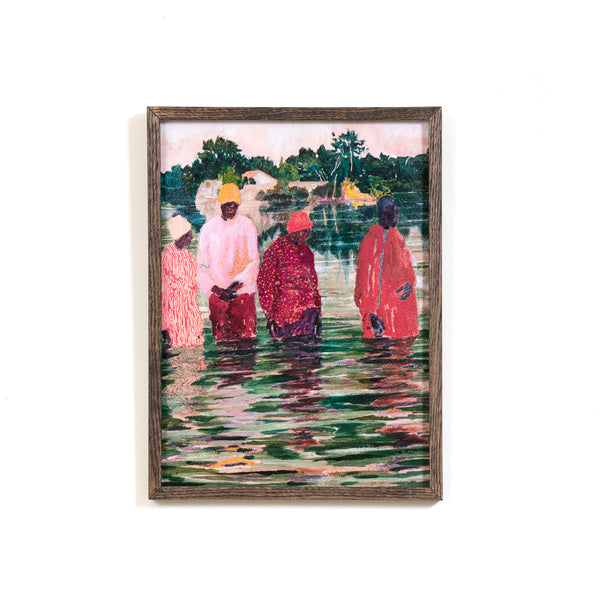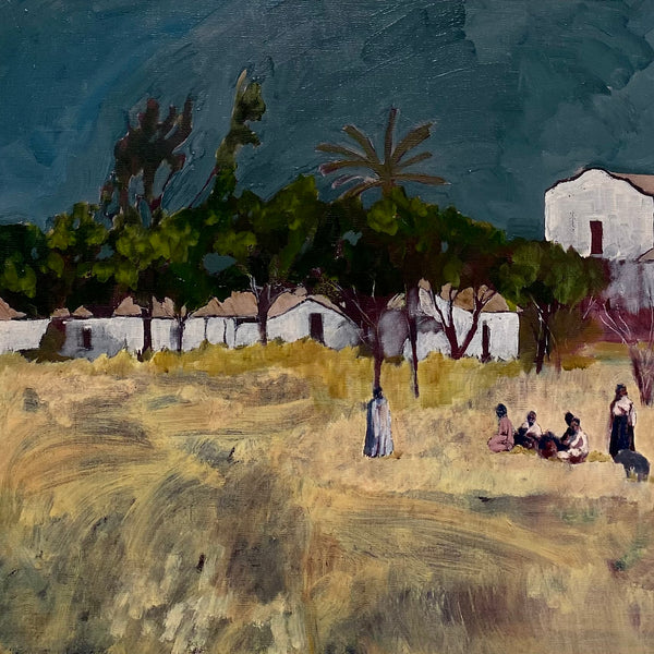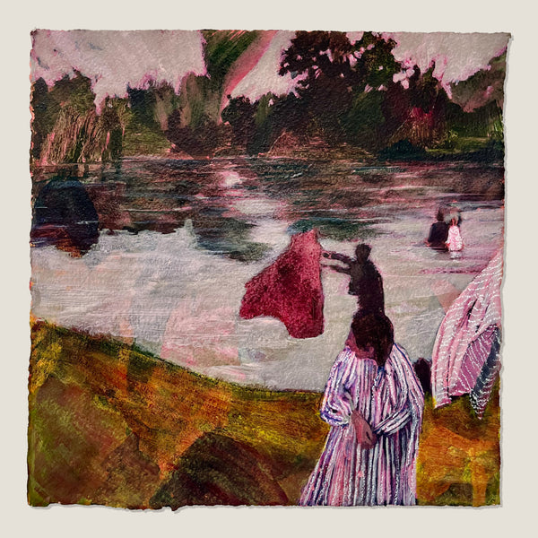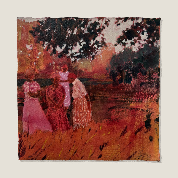 Seeking a sense of universality in his work, Ben uses a mixture of personal photography and found images to create collages that form the springboard for the finished paintings.