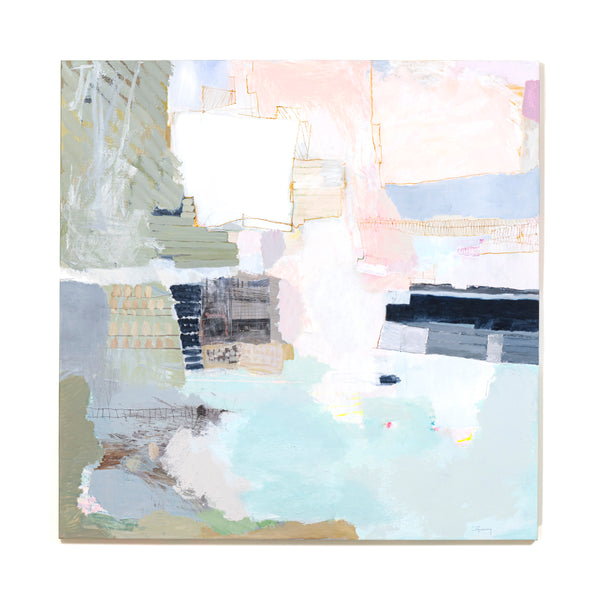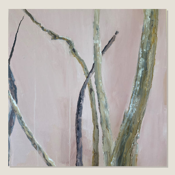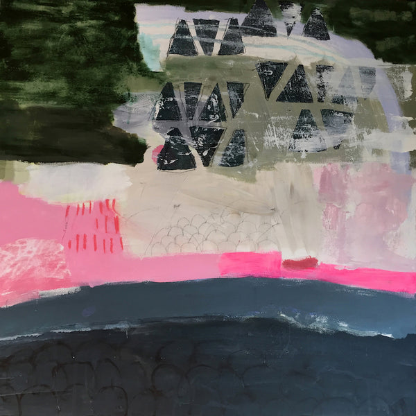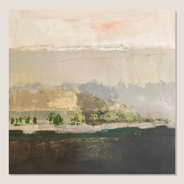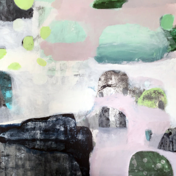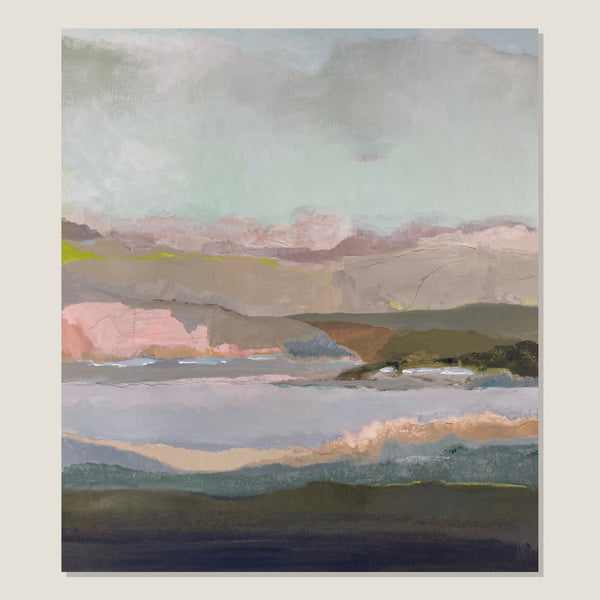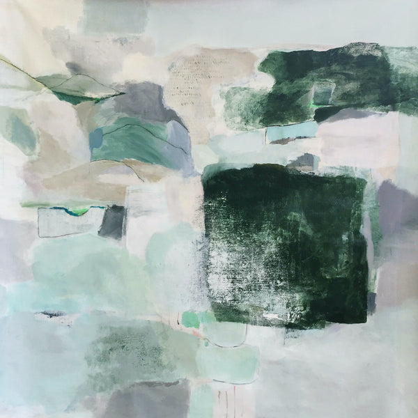 Colleen’s paintings represent the physical act of painting and the inner calmness that occurs when she paints. In the making of her paintings, she expresses something that is felt rather than observed and has developed a methodology through layers of texture, colour and intuitive marks and shapes that reference the natural landscape around her. Colour is the most important element of her work and getting it right is key to knowing when a painting is working, or when it is finished. “I find myself spending more time in nature than ever before and it has become the ultimate inspiration for the work. Here I share the trees, the sea, the hills through my interior landscape.