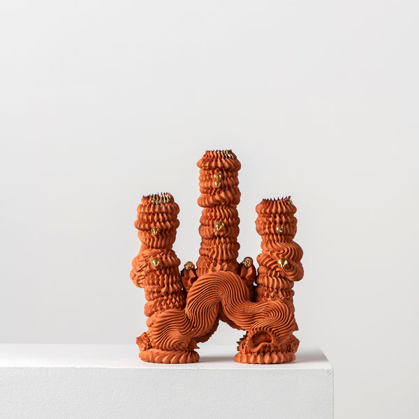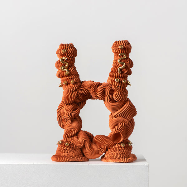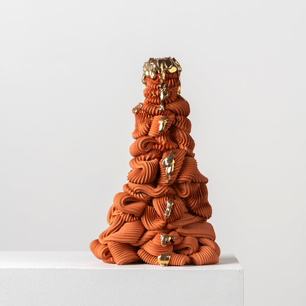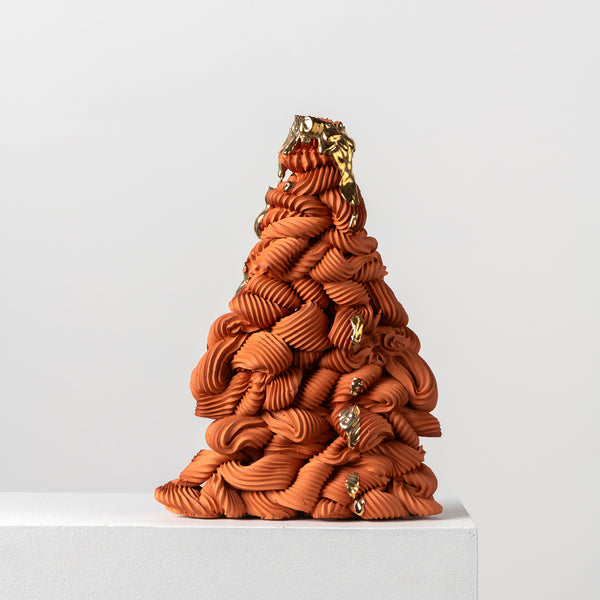Ebony Russell is an Australian artist who uses an unorthodox approach to construct ceramic sculptures. Her unique technique was developed out of an interest in gendered aesthetics, labour and traditional craft practices where Russell methodically pipes porcelain in series of intricate layers to build gravity-defying forms. Challenging the traditional making processes of decorative vessels; in her works the decoration becomes the structure, and the boundaries between the two are erased. Exploring established perceptions of cultural and artistic practices that were once exclusively coded as feminine and thus insignificant, Russell’s work celebrates the decorative, promiscuous aesthetics and politics of purity; the superficial, excess and delight – with pleasure.