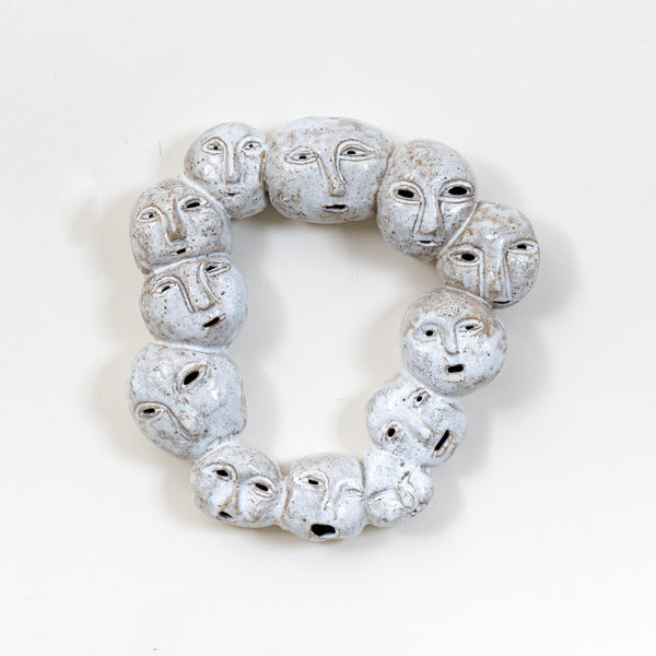 While steadfastly irreligious, Georgia Harvey sees positives in the process of collective or individual ritual, of partaking in reminders to regroup and refocus. Starting with the idea of the ex-voto – a symbolic offering for an answered prayer – and extending to riff on motifs at once ancient and yet ageless in their familiarity, these assembled artefacts offer a light-hearted take on the benefits of regularly checking in with one’s own mortality.