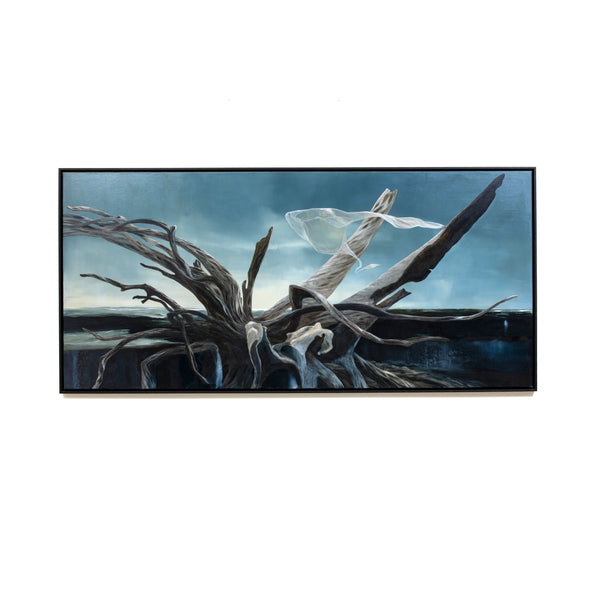 "With the medium of oil paint, I'm endeavouring to bring to life a beautiful moment of discovery and wandering. These walks are embraced by the twists and deep hovering forms that wait on the coastal fringe.
