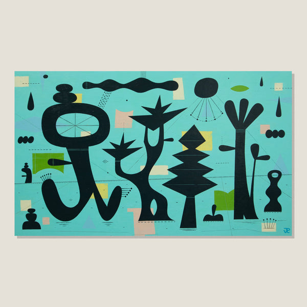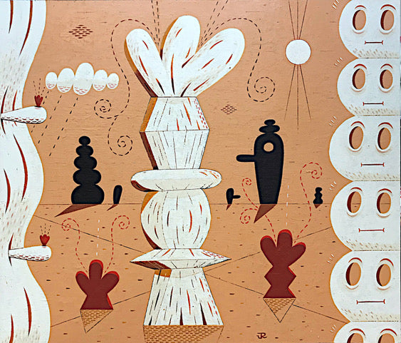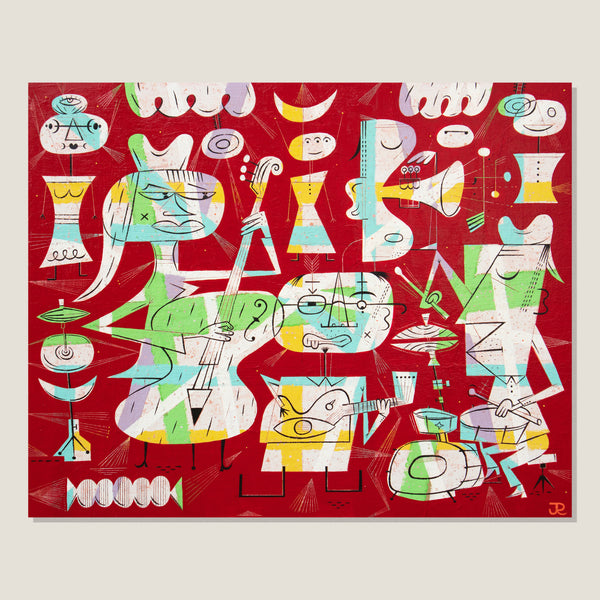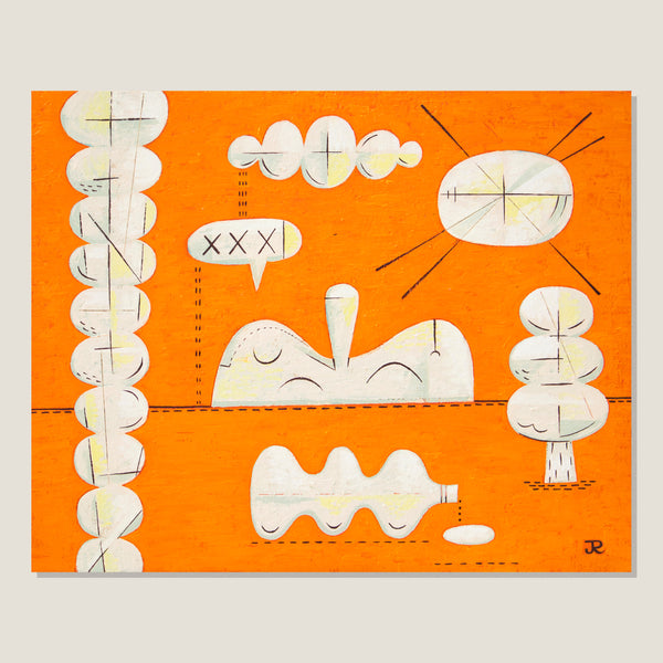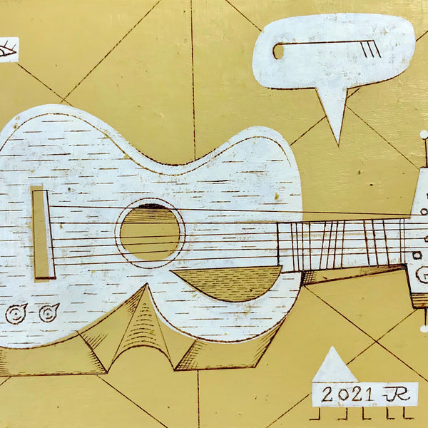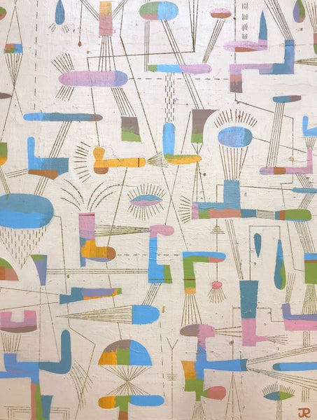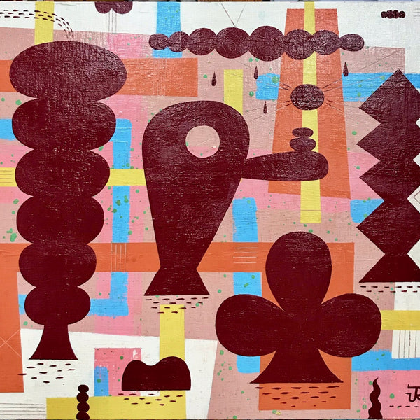 Jeff Raglus is a pop art painter who regularly blurs the line between graphic and fine art. He has worked for Mambo, Swatch and the Arena Theatre Company. He is also a musician who has played many styles over the past 40 years. Raglus is not particularly concerned with genres either in music or art. His work is not strictly confined to a movement or group, though his work has an ‘outsider’'or 'folk art' feel, Jeff likes to think of his art as abstract cartoon or just 'pop.