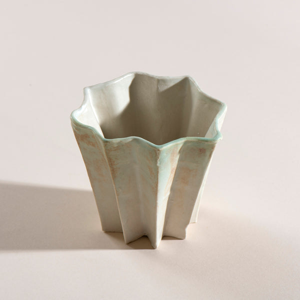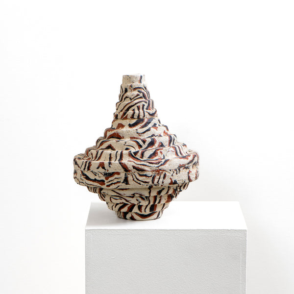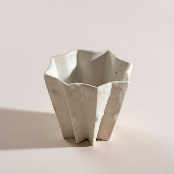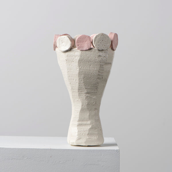 My objects are initially carved from disposable materials such as foam and cardboard, then translated into ceramic. Something is gained in this translation; more than the evidence of my process, a hope and joy that difference can offer. My process highlights the texture of foam and cardboard and exaggerates imperfection.