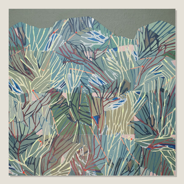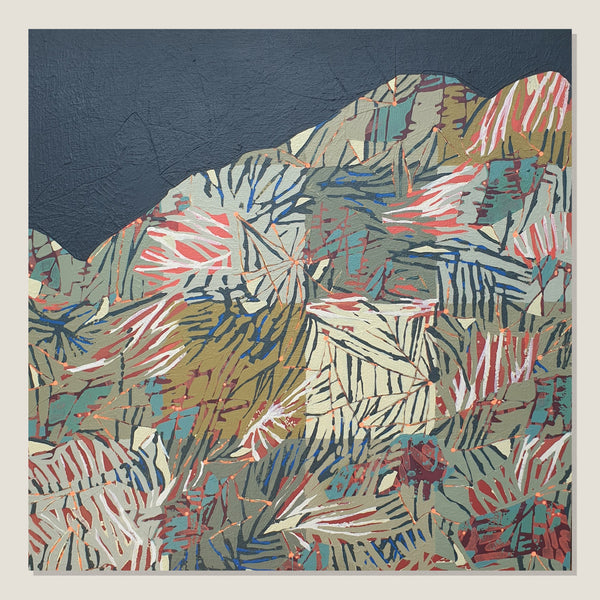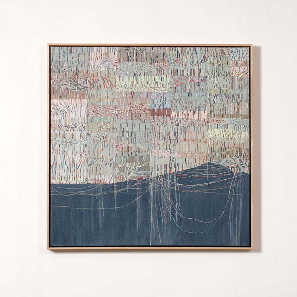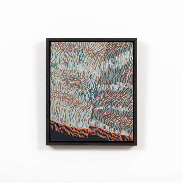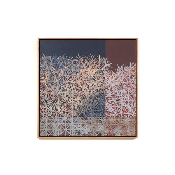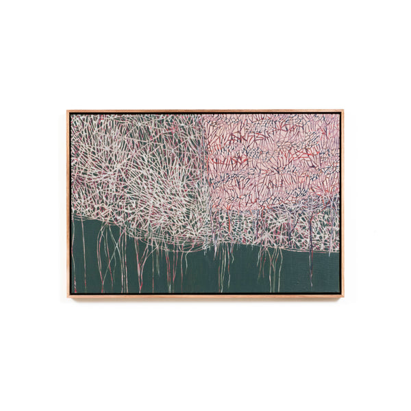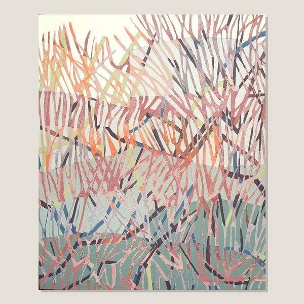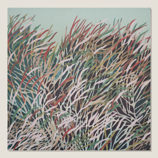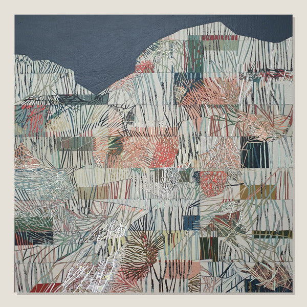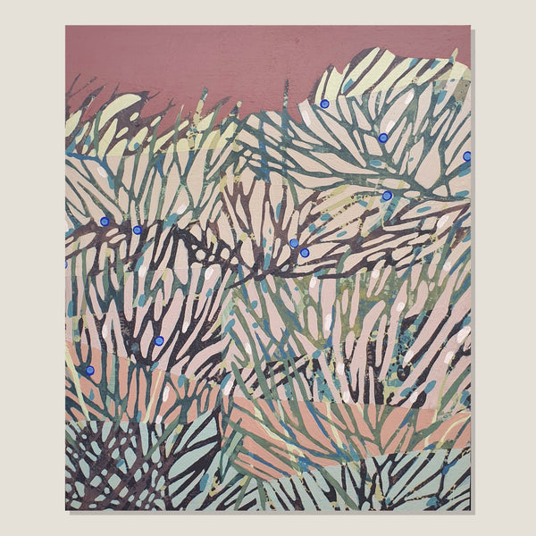 Liz Wickramasinghe’s richly layered paintings explore the landscapes, ecologies and botanica from her local environments of the Wadawurrung, Gulidjan and Gaduband countries of the Bellarine, Surf Coast and Otway regions of Victoria, as well other significant places she has visited throughout her life. Early memories of making things such as textiles, sewing and collage have strongly informed her process-based approach in making her works.