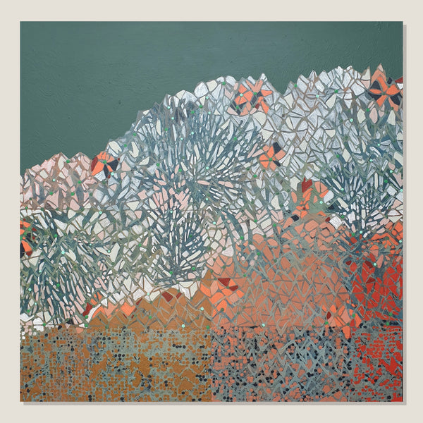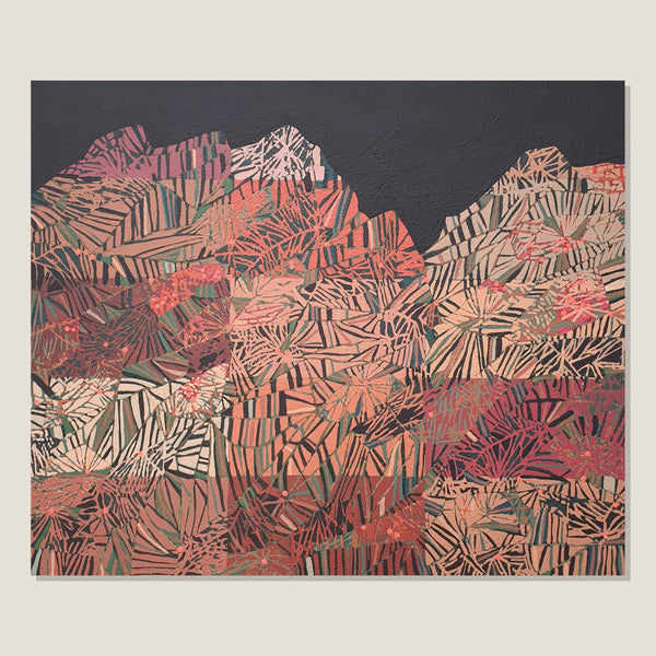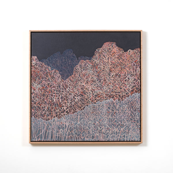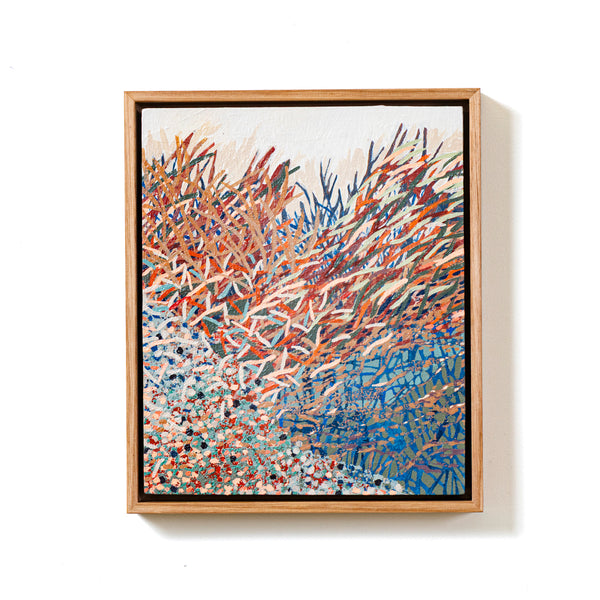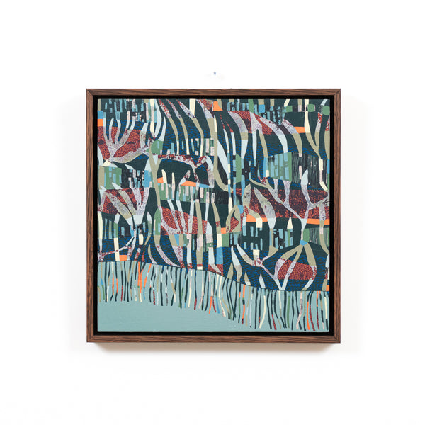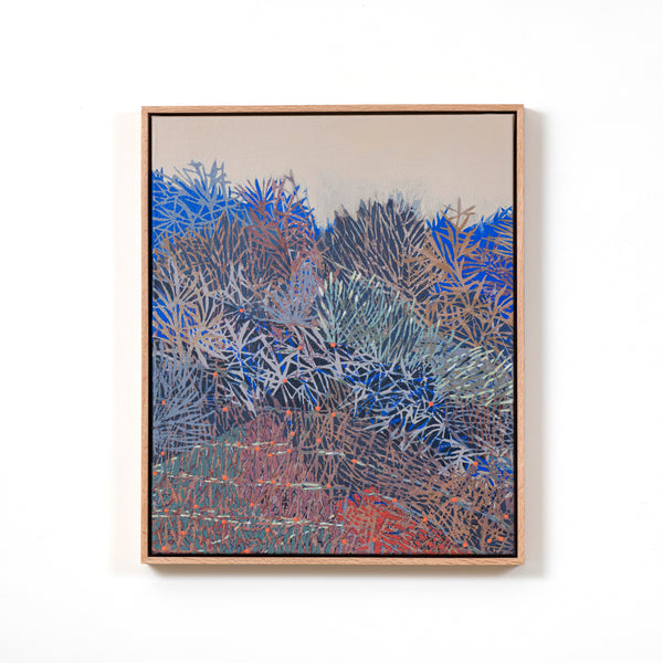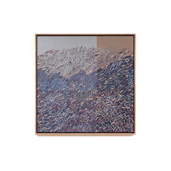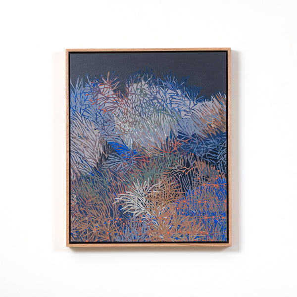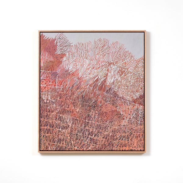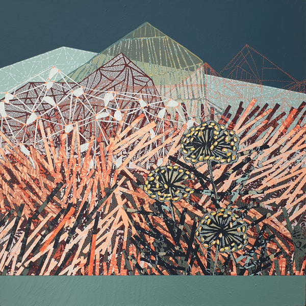 Liz Wickramasinghe’s richly layered paintings explore the landscapes, ecologies and botanica from her local environments of the Wadawurrung, Gulidjan and Gaduband countries of the Bellarine, Surf Coast and Otway regions of Victoria, as well other significant places she has visited throughout her life. Early memories of making things such as textiles, sewing and collage have strongly informed her process-based approach in making her works.