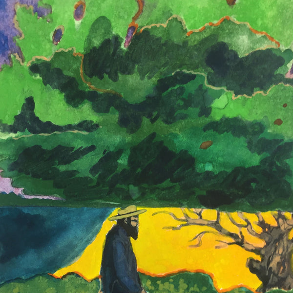 Egan employs painting and drawing to create a rich visual awareness of his world. Depicting landscapes full of colour and form, that blend between a figurative and abstract depicted space. He is interested in observing nature in real time, then reimagining it later in his studio, where he references literature and art history.