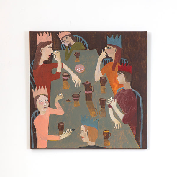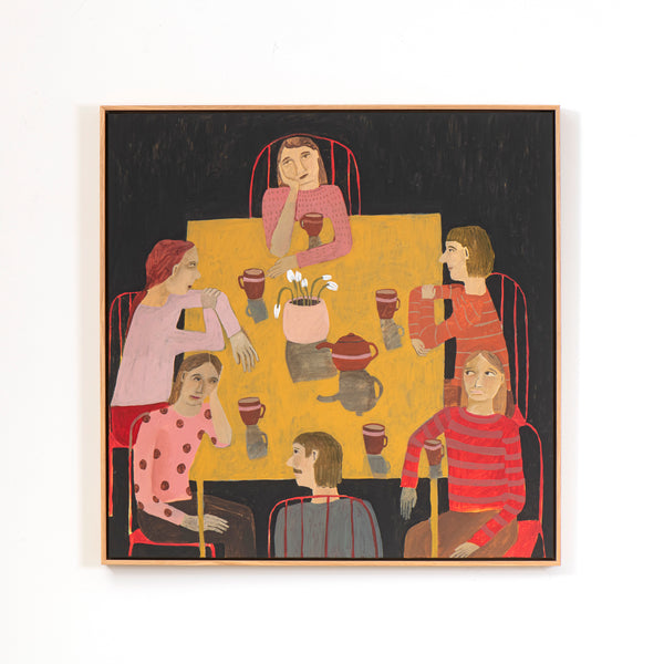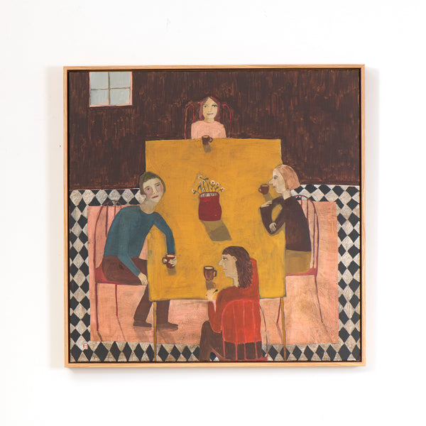She is interested in situations that connect us, the stories that help us make sense of the world. Her paintings encourage us to pause for a moment, to consider and wonder about the people and objects within. They invite us to enter the narrative of the picture, to smile with a sense of nostalgic familiarity, and ultimately to interpret the work through the lens of our own experiences and memories, our own complex lives.