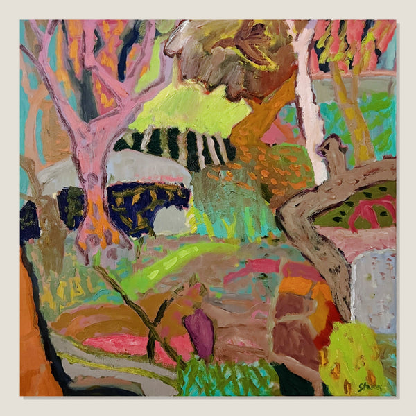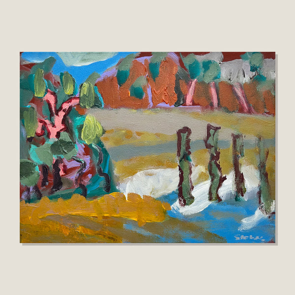Sally Stokes is a Sydney based abstract landscape artist who works from her studio amongst the angophoras in Dural and her boatshed studio in a remote part of the Hawkesbury River.