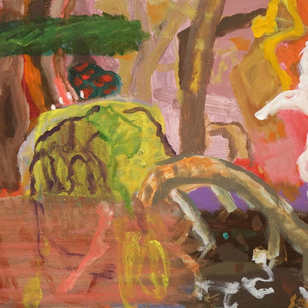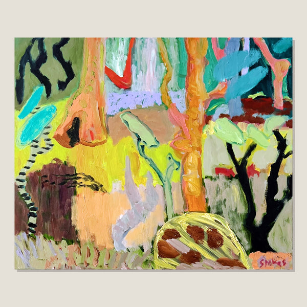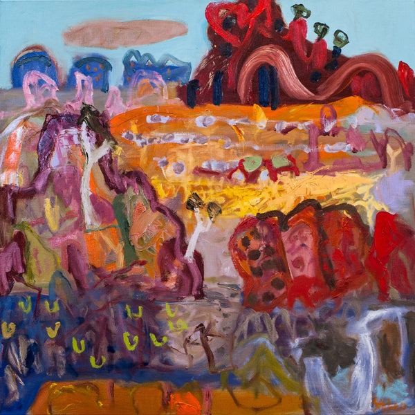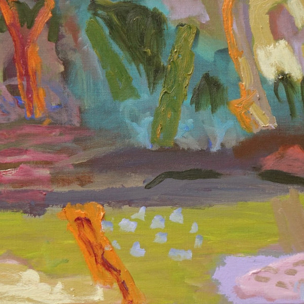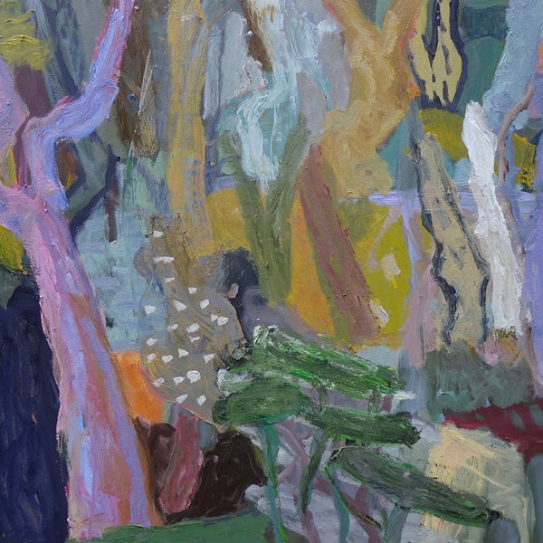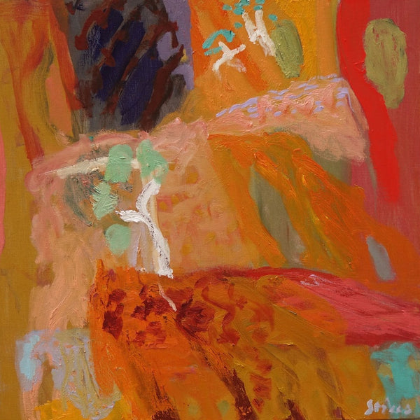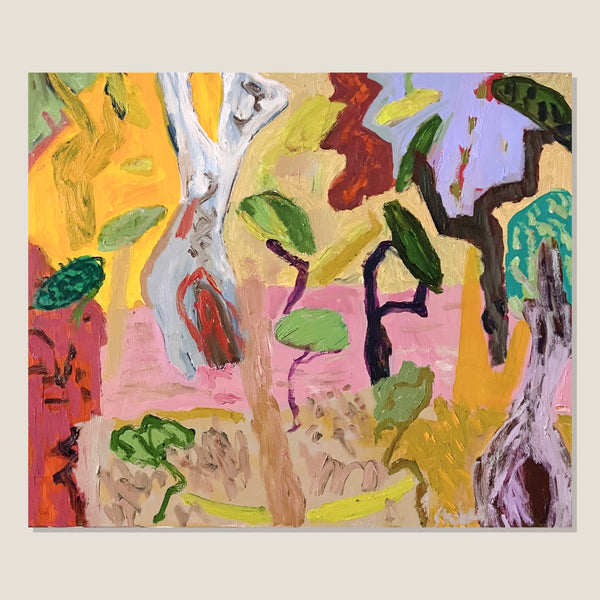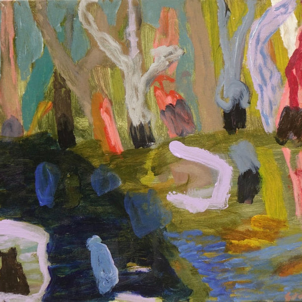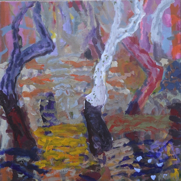 The energy of landscape is at the heart of the painting of Sally Stokes. That hint of mystery, the strange ecological relationships that nurture our sense of being human and our sense of transformation. This energy particularly comes from the Australian landscapes — the annual trips to the desert — drawing and absorbing this world — removed even from the internet — days on the river around the Hawkesbury and the incredibly diverse interrelationships of the Hawkesbury sandstone country’s complexity — more diverse than the Amazon acre to acre.