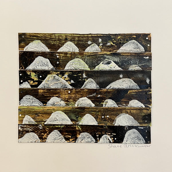 Shane Drinkwater delves into the act of painting landscapes with a minimum repertoire of visual elements aiming for a maximum visual intensity. The images are spontaneous, easy to view but full of visual and emotive information, letting the viewer respond with their own perceptions.