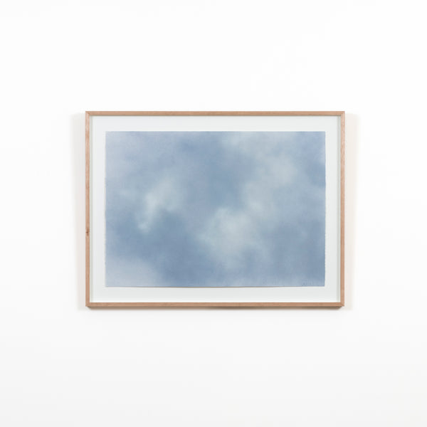 This new series Towards The Blue delves into the interplay between the blue spectrum of natural and artificial light, capturing the essence of the sky in various shades. By imprinting pressed pastel and painting these images onto surfaces by hand, they preserve the fleeting moments of clouds bathed in different hues of light. The varied processes highlights the contrast between the genuine blue light of nature and the artificial blue light we encounter daily on screens, inviting reflection on our perception of reality and memory of the image over time.