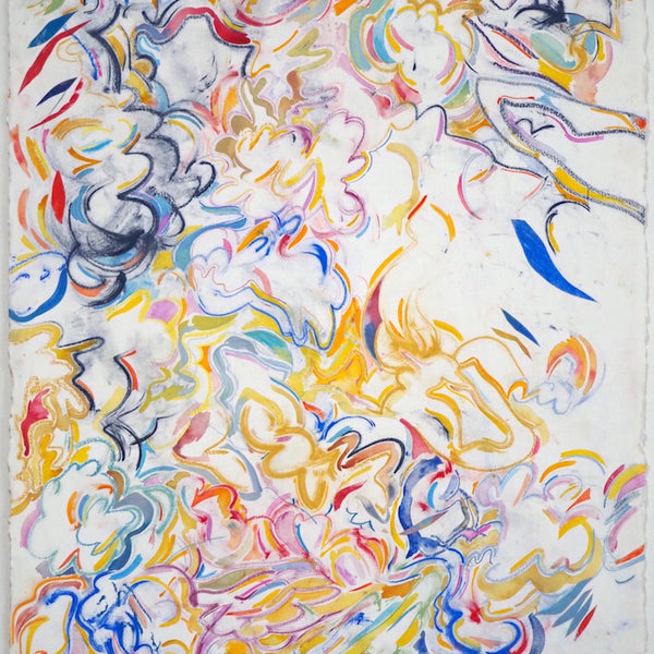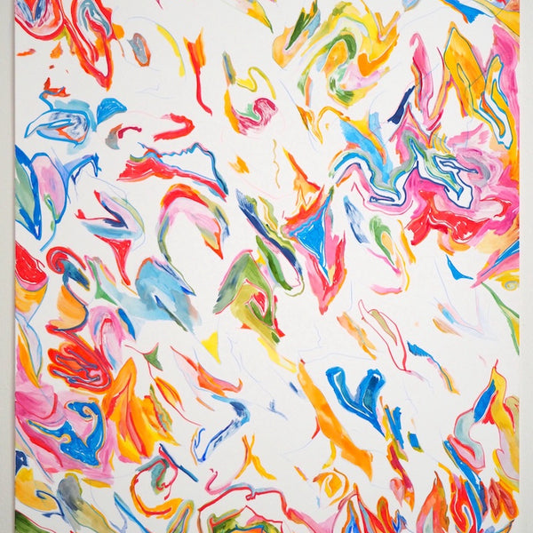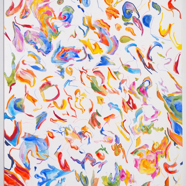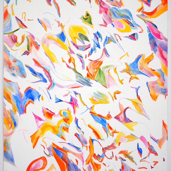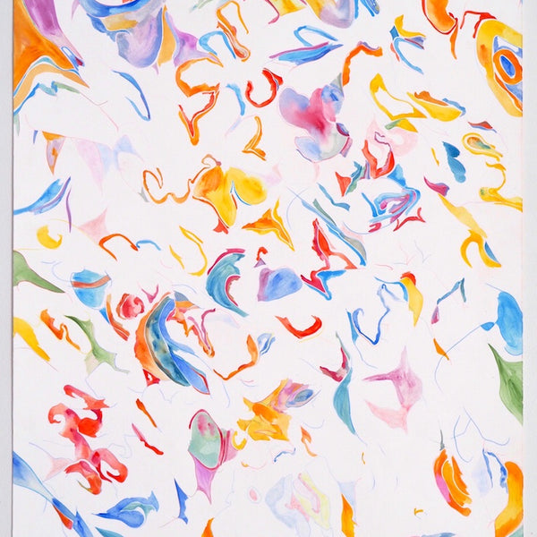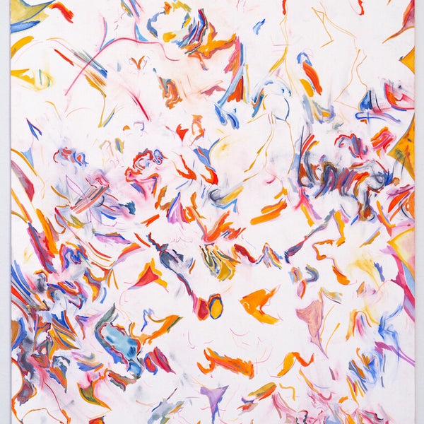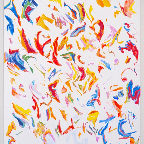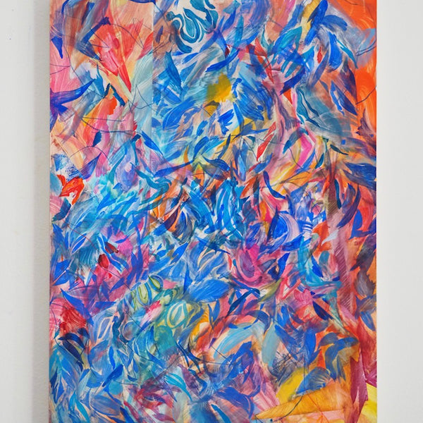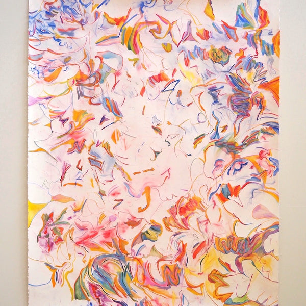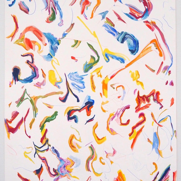 Unfold, Fragment and Disperse explores how non-representational drawing and painting processes can capture the physical movements, gestures and decisions of the artist. Through works on paper and board, Ariana Luca explores how the process of constructing an abstract composition can be captured and reflected within the surfaces of the works themselves. In this series, each work is created without a preconceived idea of the finished composition. After the first few marks are made, the works begin to unfold slowly through an accumulation of both controlled and spontaneous gestures. Each new compositional decision is informed by the history of past gestures that exist within the surface of the work. The resulting drawings and paintings contain layers of varying intentionality, as spontaneous, absent-minded mark-making sits alongside carefully constructed abstract forms and shapes. Painted gestures, pencil lines and pastel smudges act as imprints of the artist’s physical movements, revealing the slow process of constructing an abstract composition. Within Luca’s practice, each drawing sits amongst a series of iterations. Each work informs the next, as shapes and patterns that emerged in one drawing are repeated and recomposed throughout following works. These repeating gestures form part of a continually evolving abstract language, which grows and morphs throughout each new series of works.