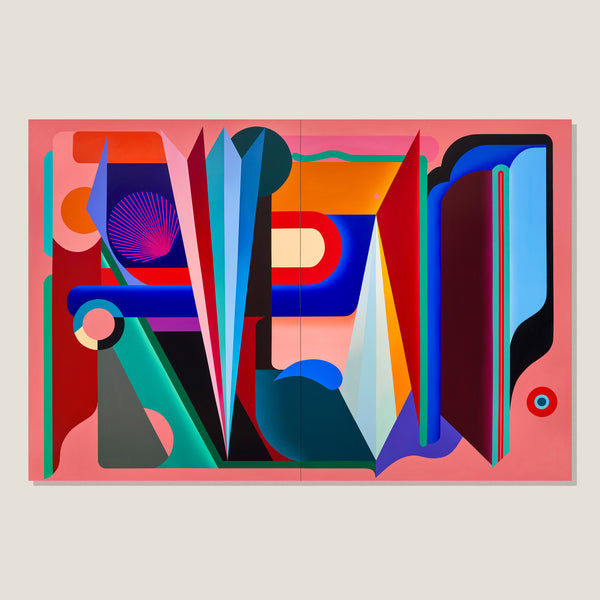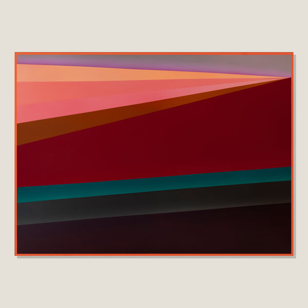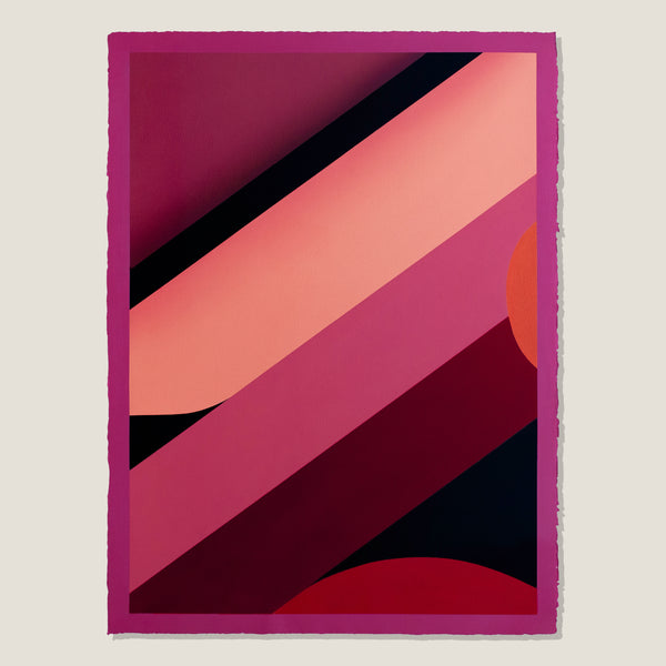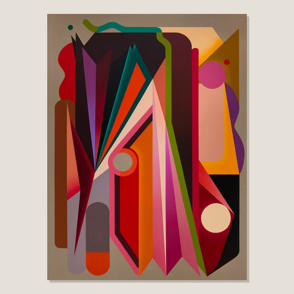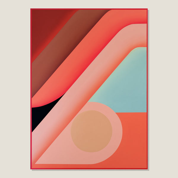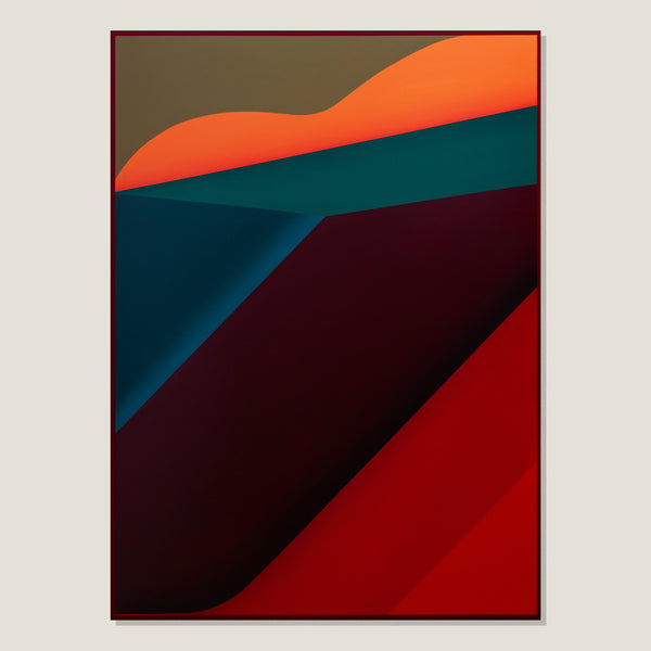 The use of bold, rich and warm colours play a significant part in my expression of this. With the application of laying paint, I blend colours to highlight the edges of the shape. This creates a thread of light that travels through the painting and encourages colour and shape to move. Although the colours and shapes are individually contrasting, together they sit harmoniously."