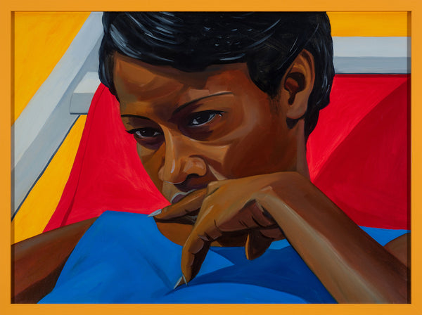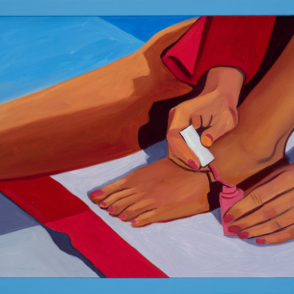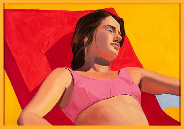 Red, Yellow, Blue is McNab’s first iteration of a painted, cinematic series, presenting narratives that unfold over the course of the 5 part series. Linked through a mise en scène approach to painting; her bold use of primary colour and clever editing is analogous to a film still from the French New Wave era, each work reminiscent of a ‘close up’ or a ‘cut away’.