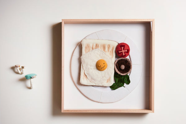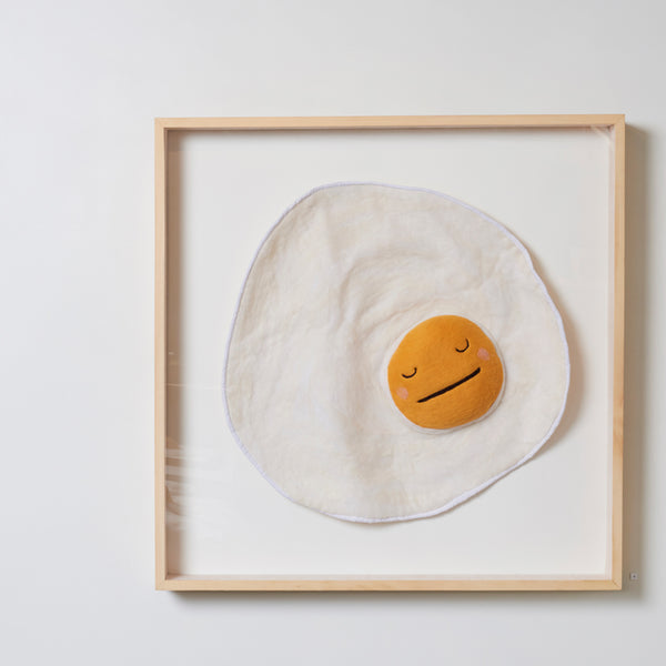 Felting is an ancient technique and utilises only basic tools and materials. These new large-scale pieces are made entirely by hand using unspun wool and techniques of wet and dry felting that draw on the fundamental elements of moisture, friction and heat. The process of making is a simplistic yet strenuous and time consuming one, and correlates with the exploration of a world without mod-cons and technological advances. While some of the subjects are universally recognisable from a world gone before (the plate of breakfast, the flower from a domestic garden), some have morphed beyond recognition - just amorphous shapes and blobs. The felt is laid over bases created from recycled packing foam, a remnant of an over-packaged world left behind."