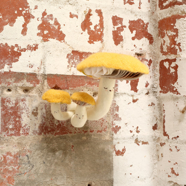 "(Nothing But) Flowers is a new body of work exploring the possibilities of felt as a medium. The title comes from a Talking Heads song, which postulates a future society that has reverted to a natural state, devoid of modern conveniences. The song followed me around all summer - on the radio, a surprise shuffle coming through my headphones, a niggling ear worm. At the same time I was considering new giant needle felted forms and how they might look in a later stage of evolution, returned to the earth or melting into the scenery around them - in a world akin to that which David Byrne hypothesises in the song.