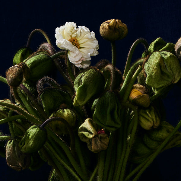 The set moves away - albeit momentarily - from Cricket’s Flemish window light - into a space with the occasional contemporary reference. The flowers, at different stages of undoing, are often secondary to the ordinary happenings elsewhere within the frame.
