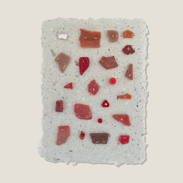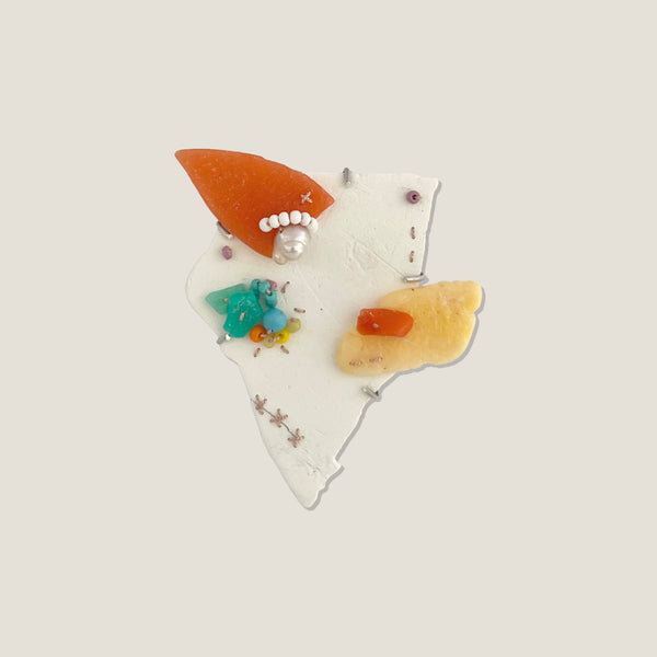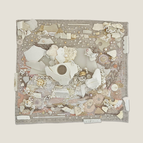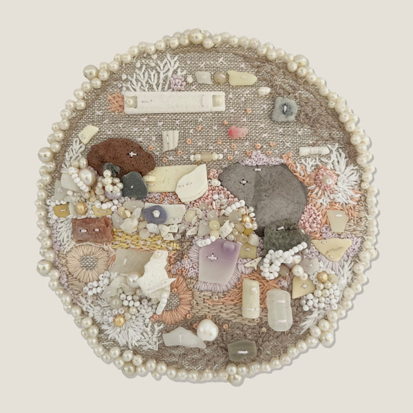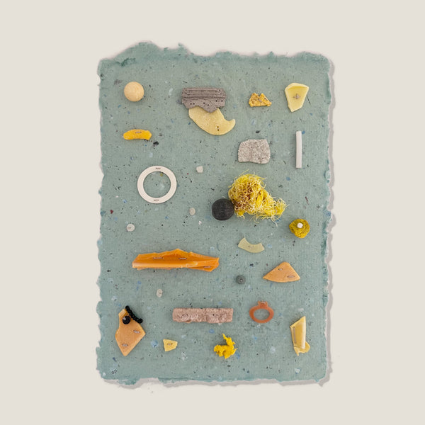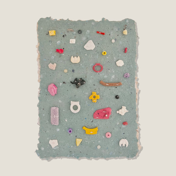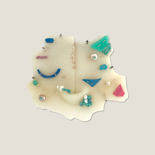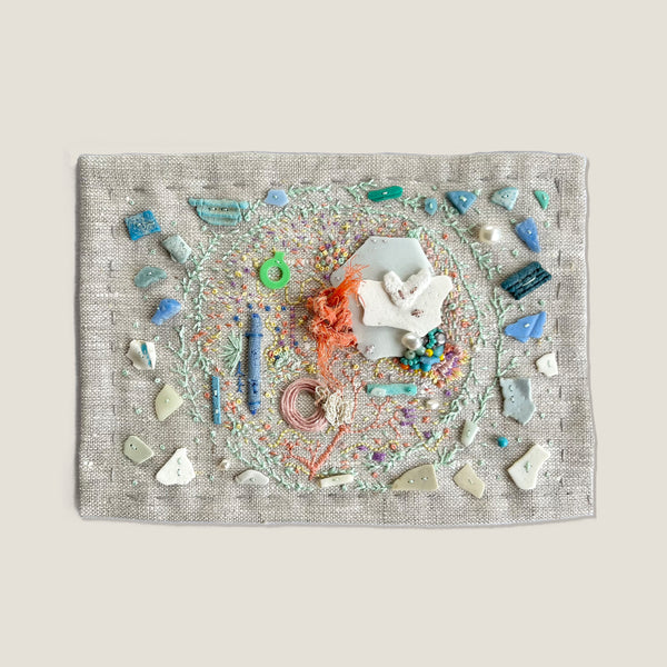 "My practice begins with collecting along the high tide line, it is where I turn inward and lean into the calm the ocean brings, exploring with childlike wonder and excitement. It is my meditation, where my mind is most calm and stays within the present moment; I once sought shells, then holdfasts and now weathered plastic 'gems.' These beautiful objects anchor me to place and poignant moments in time, they allow me to seek balance and explore a desire to embellish and adorn. Yet there is a sadness to this practice. Our oceans are choking, our wildlife are suffering and we have microplastics in our cells. We have left an undeniable mark on our natural world and it is struggling to thrive under our disrespect and disconnection to it. But there is hope to be found, light, beauty, curiosity and connection.