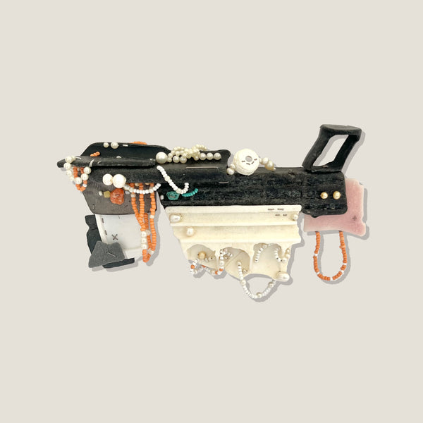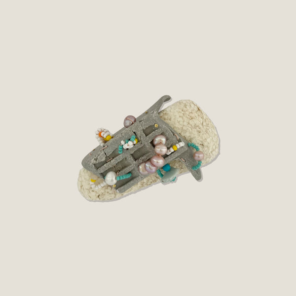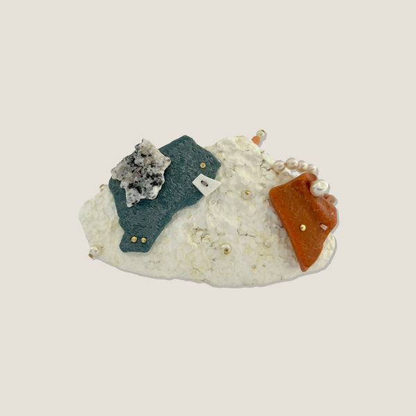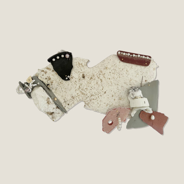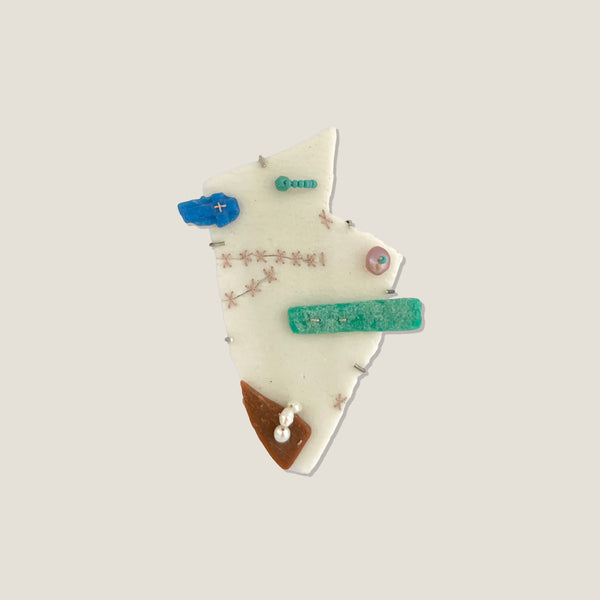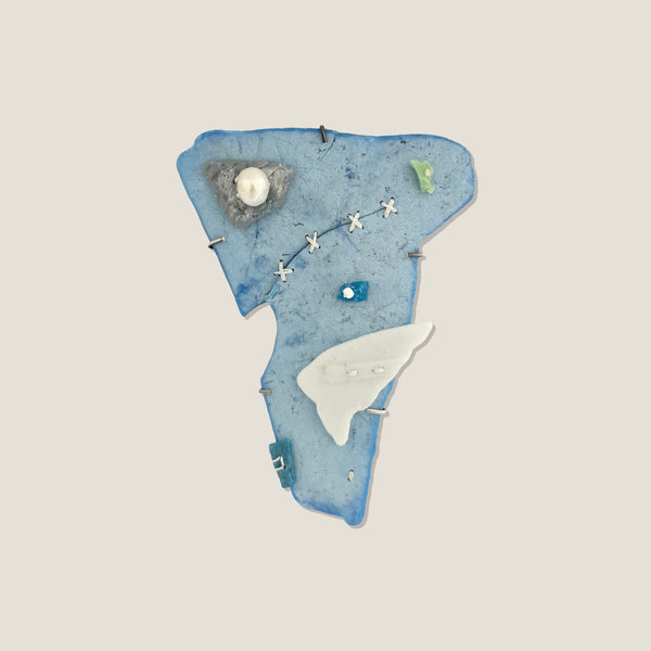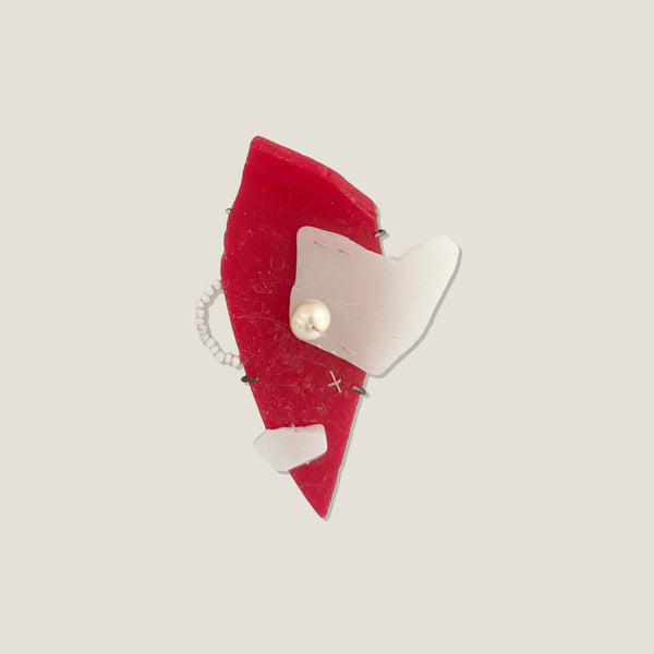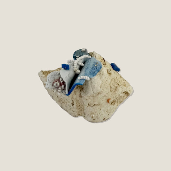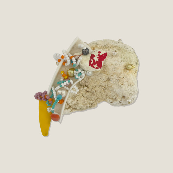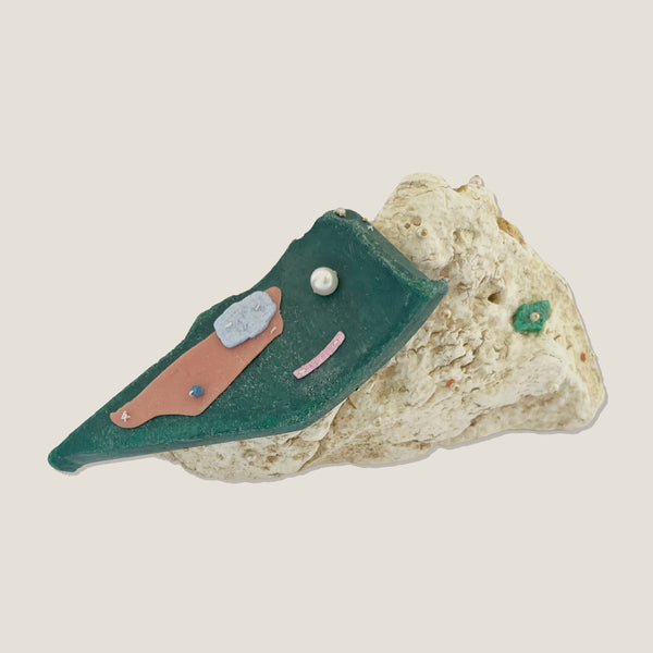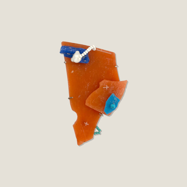 Regina’s practice has evolved from a desire to adorn the body to seeking balance and flow within ‘sculptural assemblages.’ Weathered Plastic Gems/Marine Debris/Flotsam and Jetsam are her material of choice. Collected along the high tide line, Regina elevates these unique materials, treating each one as a beautiful gem, as you would a sapphire, diamond or ruby. The plastics are paired with Freshwater and Faux Pearls, also once loved but discarded into hopeful hands of another, to elevate their perceived value.