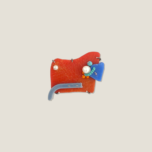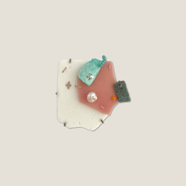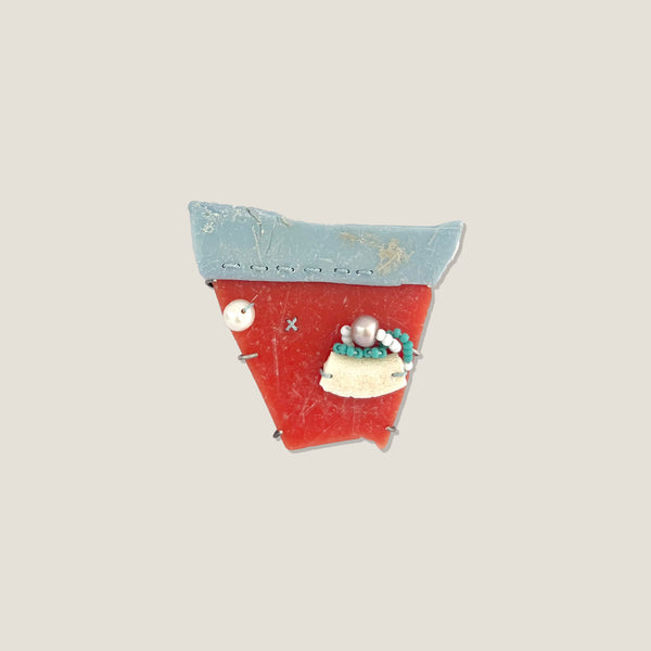 Regina Middleton's multidisciplinary arts practice incorporates both jewellery and assemblage. Based on Victoria's beautiful Surfcoast she has an intrinsic connection to the natural landscape and in particular, the ocean. The first step in Regina's art making process involves collecting plastic fragments that wash up along the shorelines. The abundance of material she finds is astounding and as such, incredibly sad.