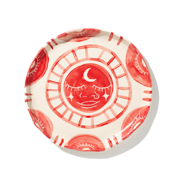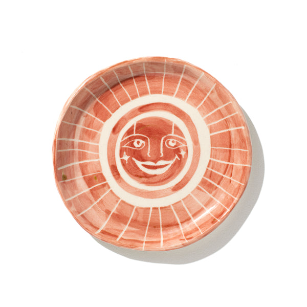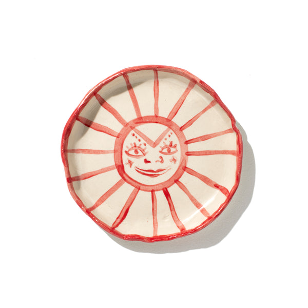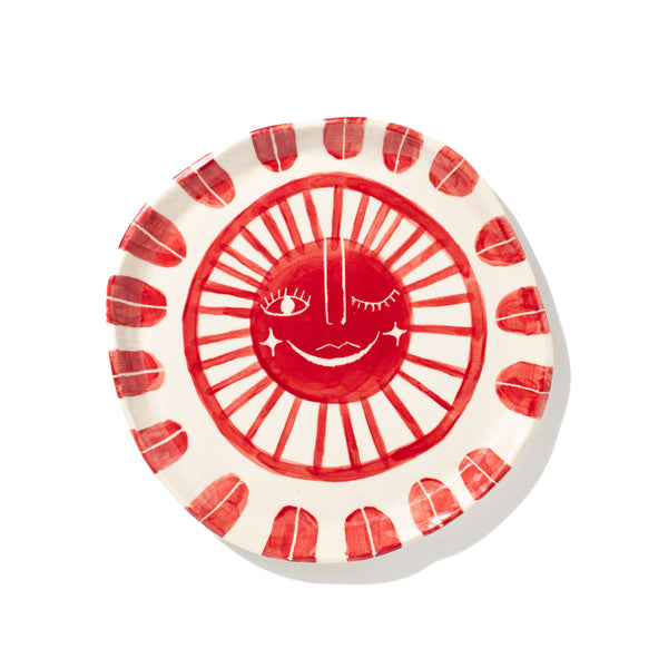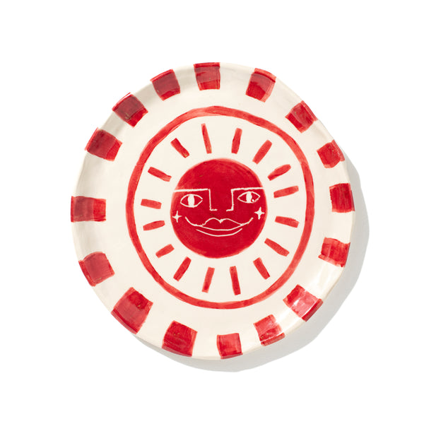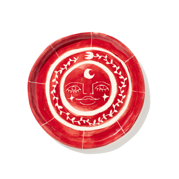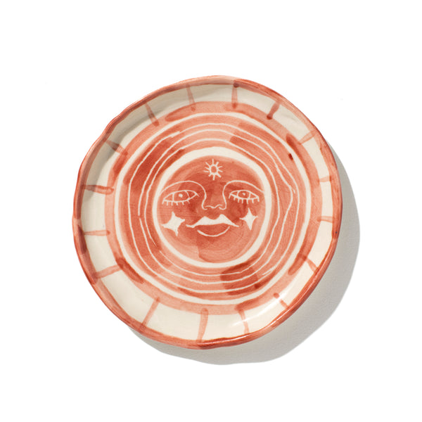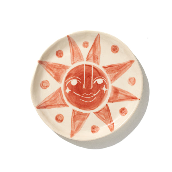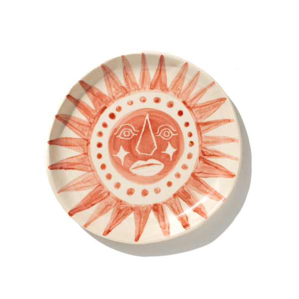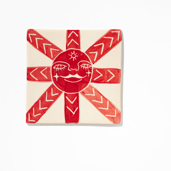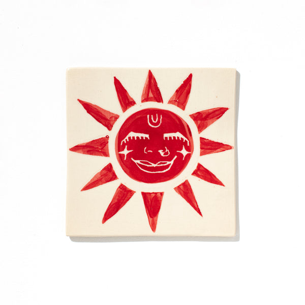 In each sun I find a part of myself that I didn’t know, I find an inclusive humanity. Crafted from Australian clay, the plates and tiles seek a connection to their place of origin.The natural Italian red mineral powder pigment, combined with powdered dry-clay and engobe, adorns them.