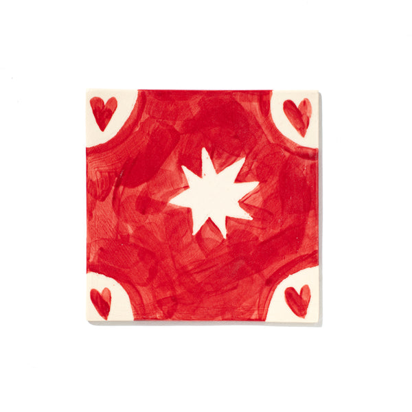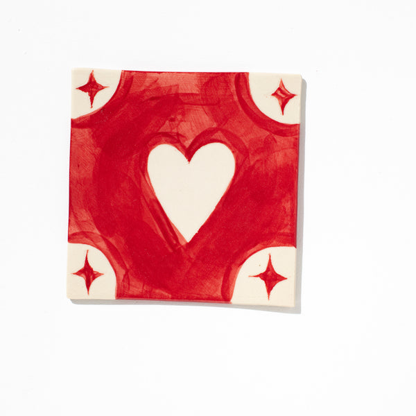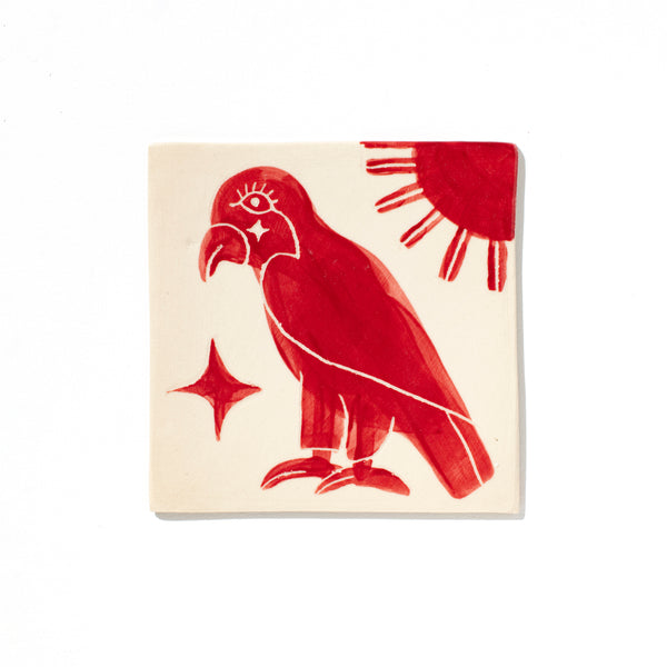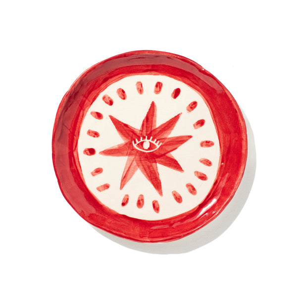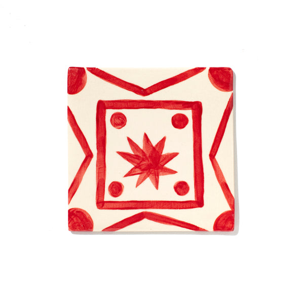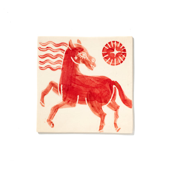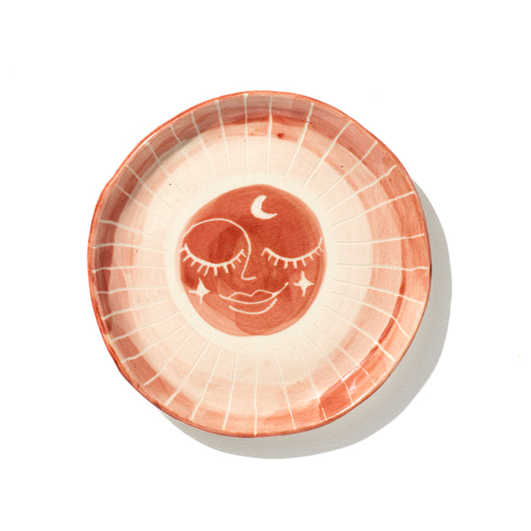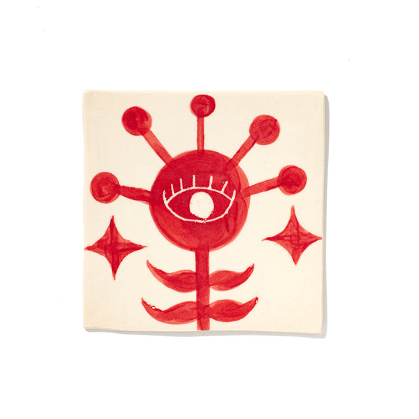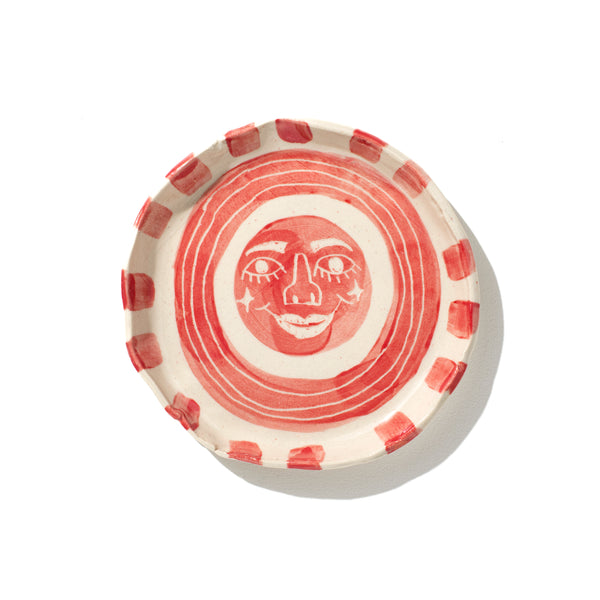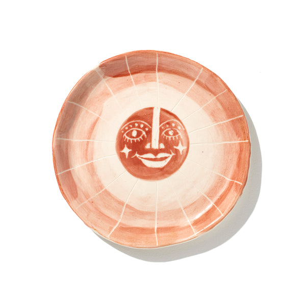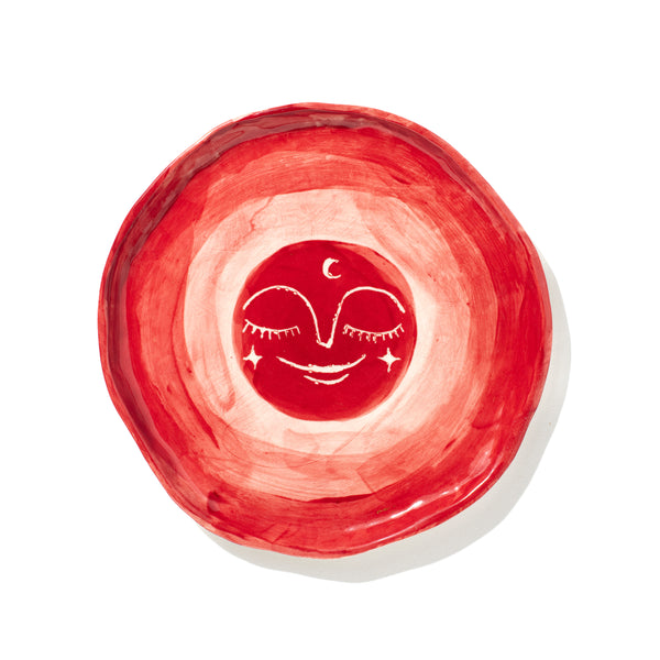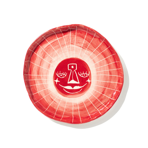 In each sun I find a part of myself that I didn’t know, I find an inclusive humanity. Crafted from Australian clay, the plates and tiles seek a connection to their place of origin.The natural Italian red mineral powder pigment, combined with powdered dry-clay and engobe, adorns them.