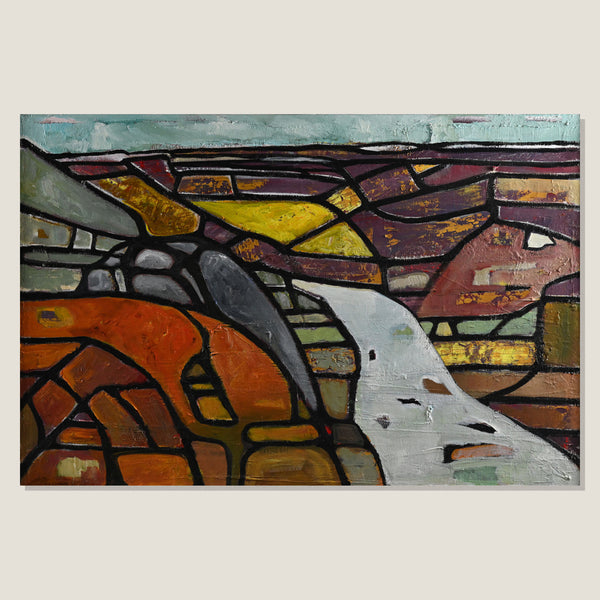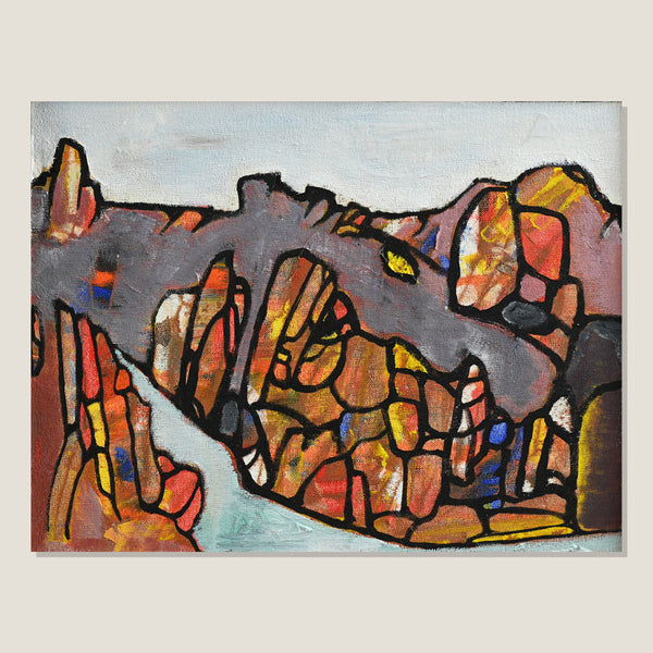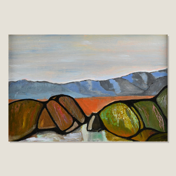 A major theme is the use of bold lines. These may help to focus on what we might otherwise miss. Natures stained – glass if you like, prompting us to take time and gaze at the light and colour of hills and rocks shaped through millennia. We are here but for a moment, but one with the opportunity to see and feel and respond. Sacred Hills is my response amongst the chorus of many others.