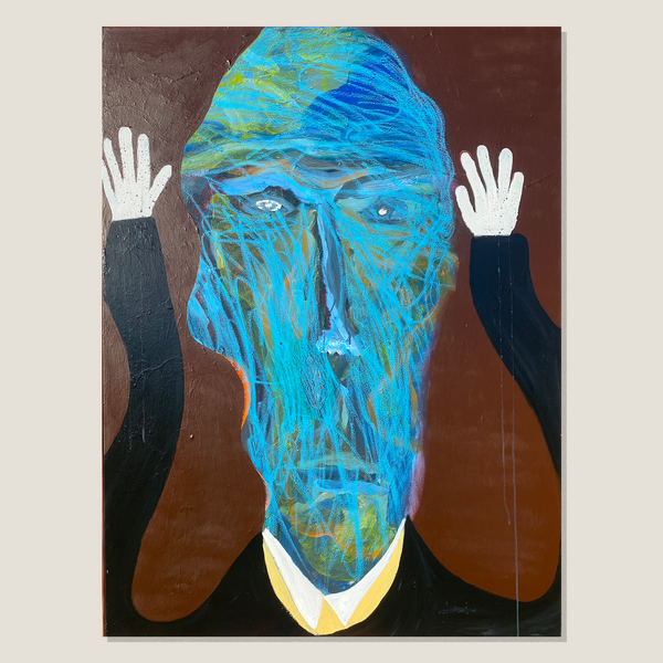 "Over the past year I've developed a new body of work in response to navigating new environments. In which I've moved out of my normal studio space and now working in a large old shed on a farming property. A change which has influenced large scale faces and figures to appear upon the wooden panels and canvas. Both space and time have allowed me to create obscure portraits that are reflective of the viewer.