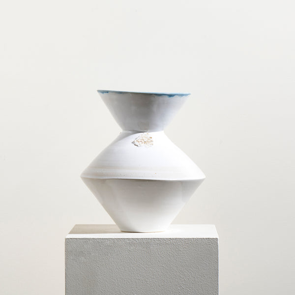 This exhibition borrows its title from French writer and mystic Romain Rolland’s phrase “oceanic feeling”, which describes a ‘sensation of eternity,’ ‘a feeling of being one with the external world as a whole,’ and has come to refer to the feeling of limitlessness and wonder when one experiences the ocean. These vessels are an expression of my connection to the ocean, and in particular Queenscliff beach, where my parents live. Other bodies of water also informed this collection of works, such as the Tasman sea and the fresh water creeks of inland Victoria. Some works were made whilst I was undertaking an artist residency in the Peninsula of South Arm in Tasmania, and include stones, shell fragments and moulded casts from collected shells from the surrounding landscape and waterways. Ochre rocks and some of the stone inclusions have been collected from the dry creek bed near my home and studio in Central Victoria. The close inspection, collection, processing and subsequent transforming of these materials gives me a deeper sense of the natural world and reflects my profound respect for it.