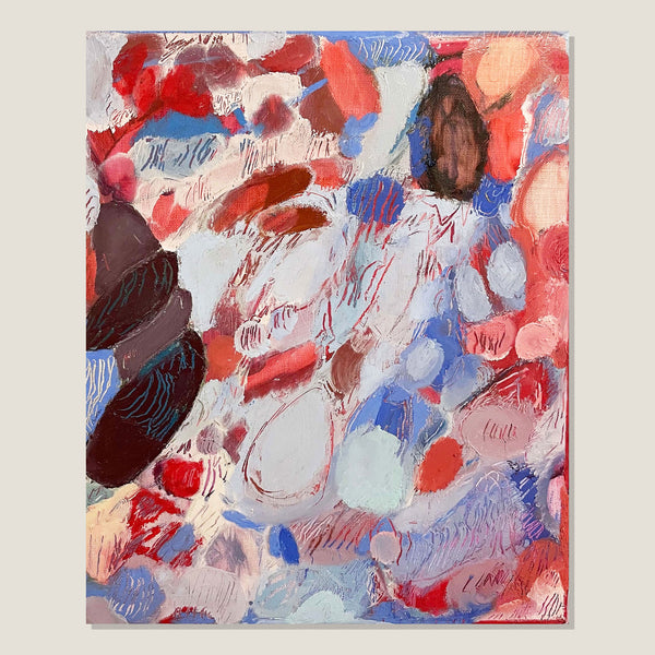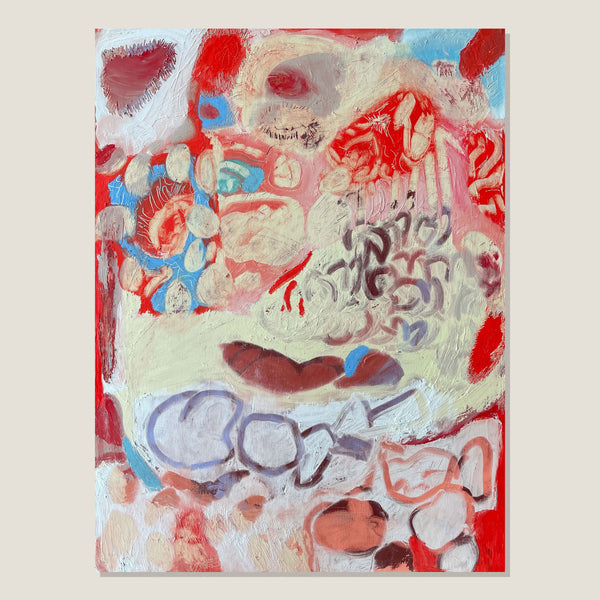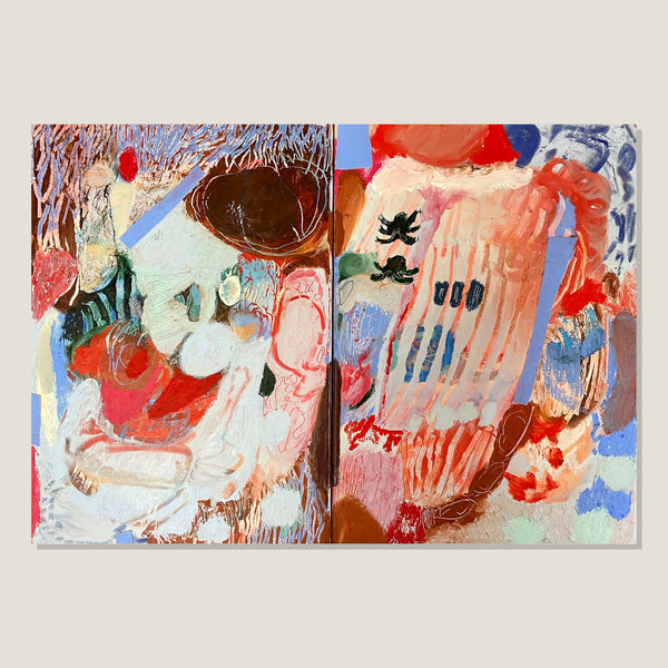 Lotte Frances’s work explores loneliness, queerness, memories in all their complexities. Lotte’s work uses a unique visual language that is delicate, immersive and playful. Lotte employs vivid colour and experimental mark-making to communicate their experience. Absorbing from their experiences and surroundings, these abstracted paintings encourage reflection and imagination.