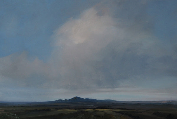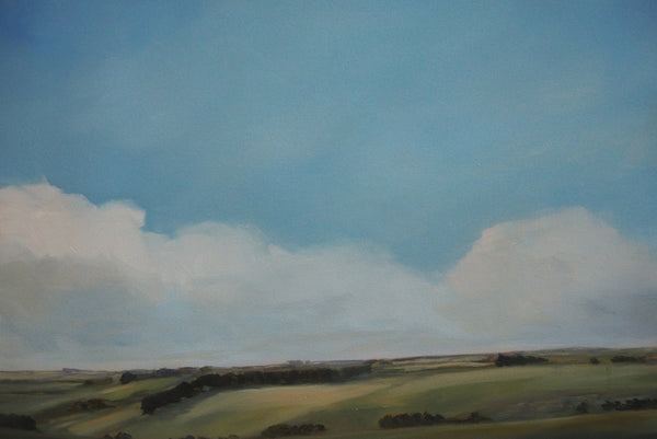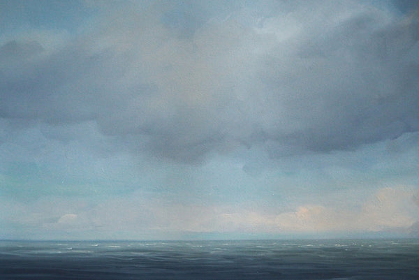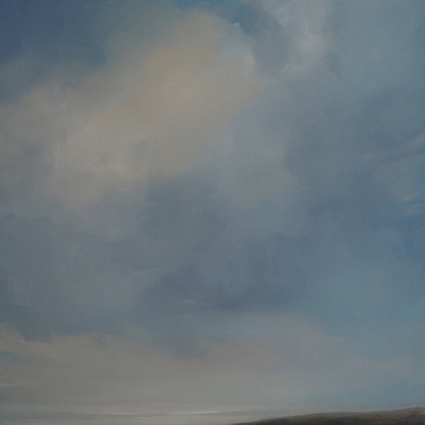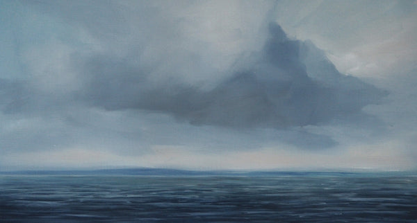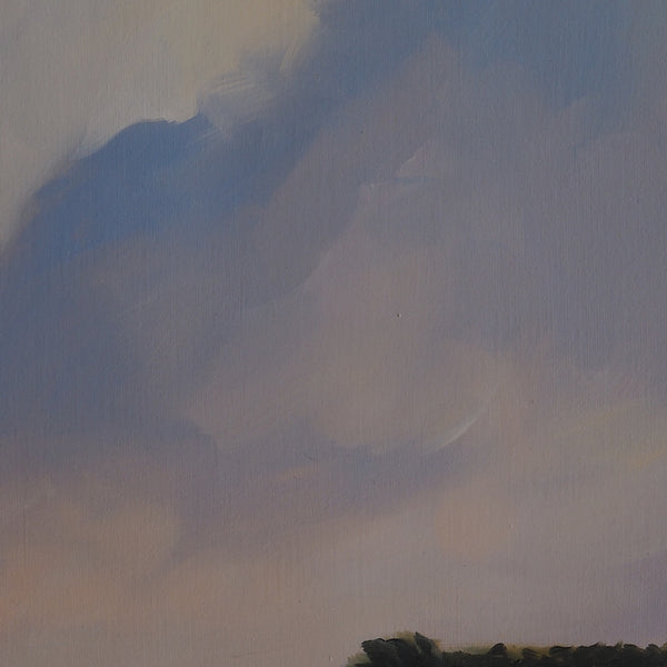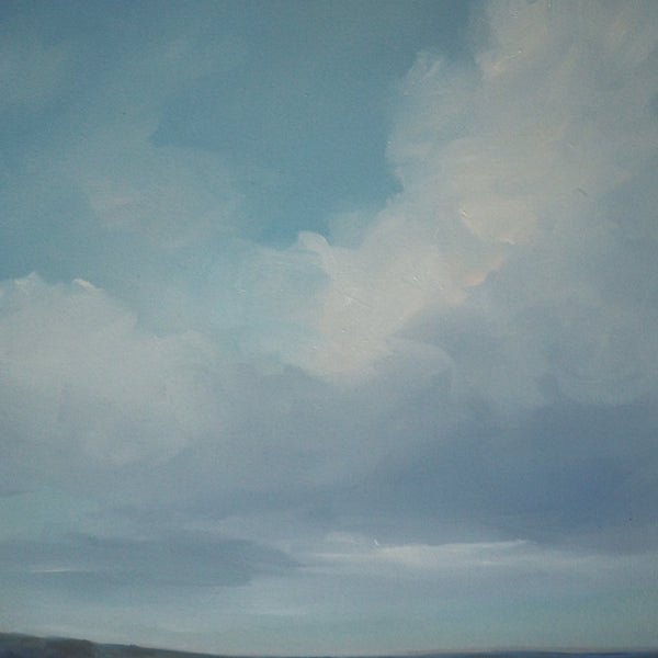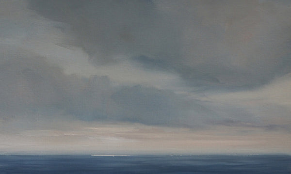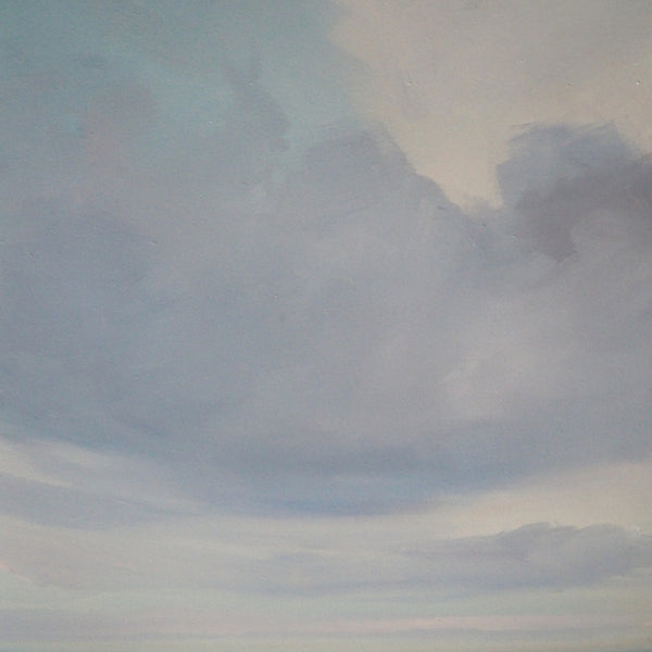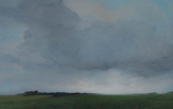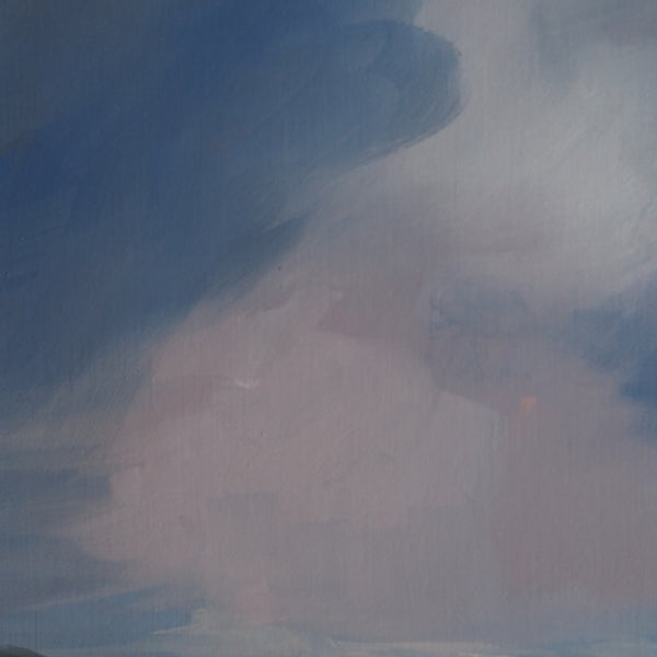 In stark contrast, these introspective, impatient paintings reflect my need for an immediate result and were therapeutic ‘downloads' at a time when concentrating on one more thing felt beyond me. No wandering, no source photos or sketches, almost no prior thought to what I intended to paint. I put a raw sienna wash down first and once dry I sketched a horizon. What followed was cloudage - masses of clouds hanging over places that are familiar if not accurate depictions of the country that surrounds us and the ever present comfort of the ocean. Contemplations, maybe of the fundamentals in life, climate and change .. and what to do about that.