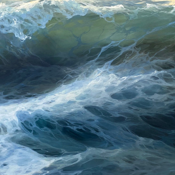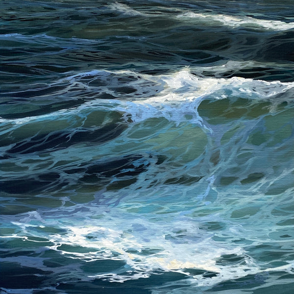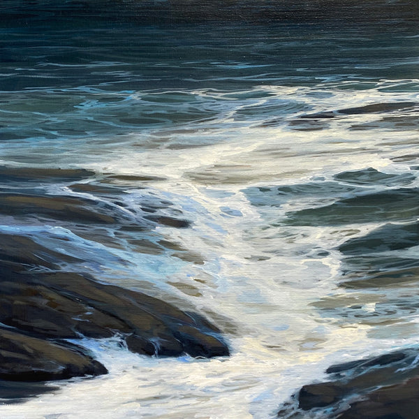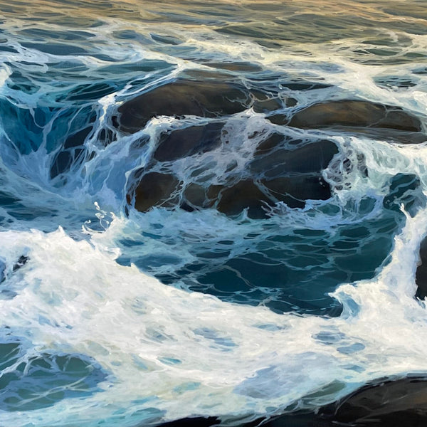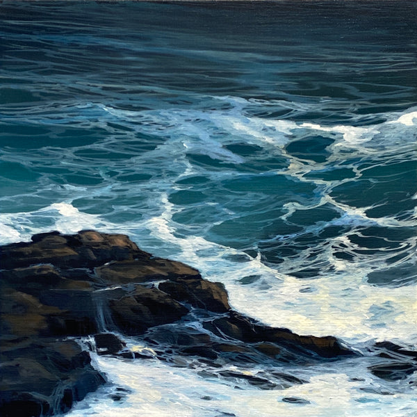 These works have been created during a global pandemic but are drawn from time spent in the haven of a humble fishing town tucked beneath the Otway’s on the edge of the Southern Ocean. There is light, there is churn, there is rock - solid ground for a few moments …and then there is none. What changes and what stays the same – an ever-present question that has woven it’s way through my painting practice from day one. Still, the only answers I ever find are in the natural world and this is the one truth for me. I will forever worship in the church of the open sky it seems."