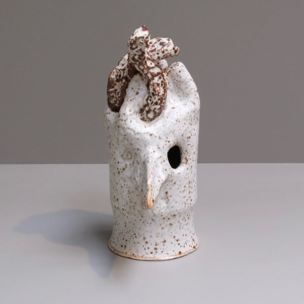 The modest house was staged with curios. The dining table set with china teacups, dinner settings, a glass punchbowl, and other functional objects collected over a lifetime. Flocked wallpaper competed with homemade tapestries and a dense forest of indoor plants filled most rooms, with a sunroom being totally devoted to ferns. It was visually enthralling.