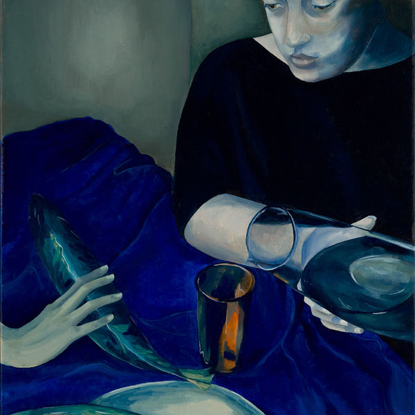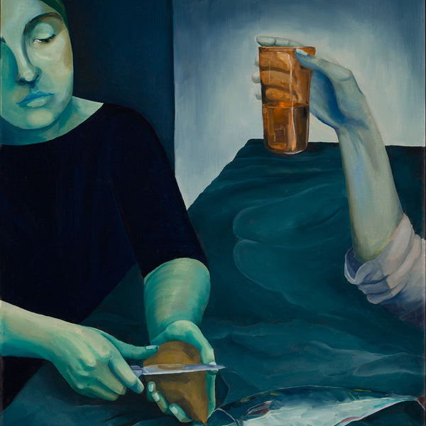 Seth Searle says “My practice revolves around representations of femininity that interact with care, hospitality and consumable goods. I am interested in the ways in which food and service can act as nourishment, and how these are gendered in western culture. Painting in oils on canvas I work with portraits, still life and interior scenes, which aim to capture the performance of femininity and question the societal value placed upon it.”