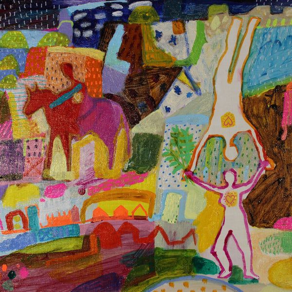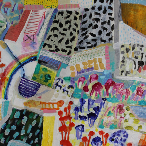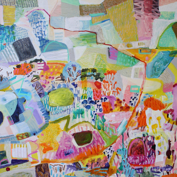 The materials I have used differ in their properties- the fluidity of ink, the control of the markers and the layered transparency of paint. The making process is like a call and response. It invites gesture, consideration and amendment until a sense of doneness is achieved.”