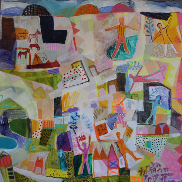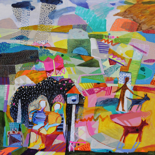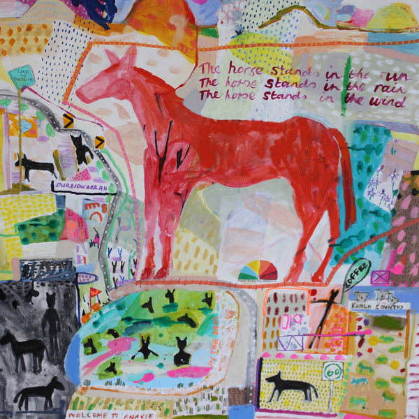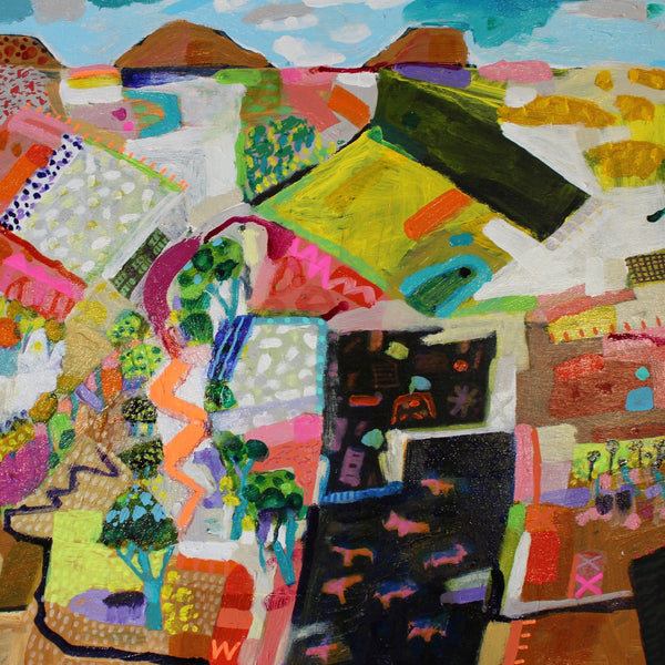 I have chosen a vibrant colour palette where the colours talk to each other and record the sometimes busy, sometimes stoic, sometimes grim, sometimes lovely aspects of life and death around The Anakies.