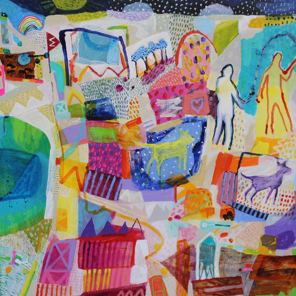 Shelley McKenzie studied Art and Art Therapy. Her practice is underpinned by the therapeutic benefits of making art and its ability to mobilize aspects of being. The immersive experience of living on 100 acres of bushland outside Geelong is reflected in the themes and motifs of her work. Her work explores the natural environment, the home, the domestic environment and objects as holding places. Objects real and imagined are placed in space; shapes and patterns are simultaneously part of the physical environment and emotional geography.