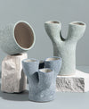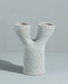 Handmade with high fired stoneware clay. A vase with branches, functional as well as sculptural. Subtle green under a bubbly volcanic textured surface.
