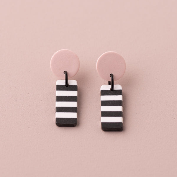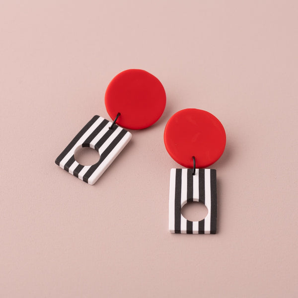 Red Disc (B&W Dangle) Earrings
