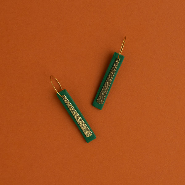 Long Bar + Brass Earring (green)