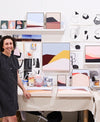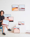 This body work is inspired by a recent tour of Central Australia, with a particular focus on the dramatic colours and light experienced in this unique environment. Marnie was captivated by the graphic lines defining the landscape as strong shadows are cast and the red earth and rock is illuminated, particularly during sunrise and sunset.