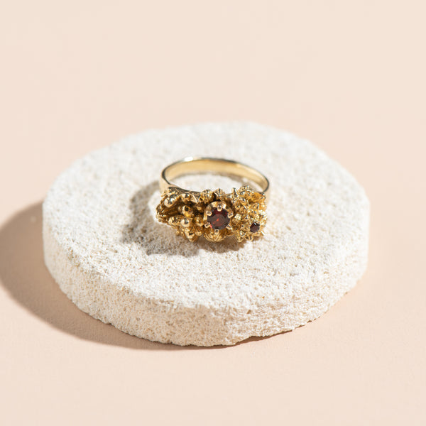 Sheoak Ring (gold with sapphire + garnet)