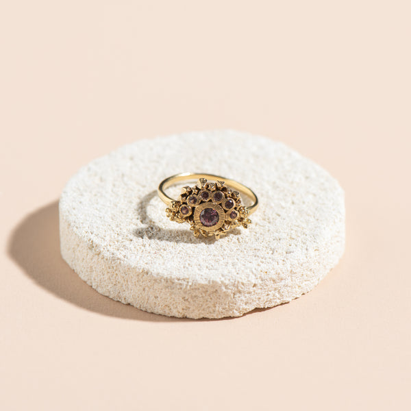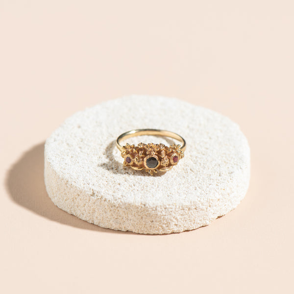 Royal Blossom Ring (gold with black spinel + garnets)