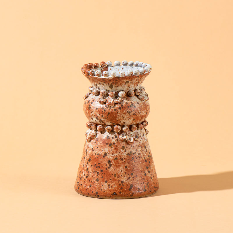 handbuilt vase, speckled clay, shino style glaze