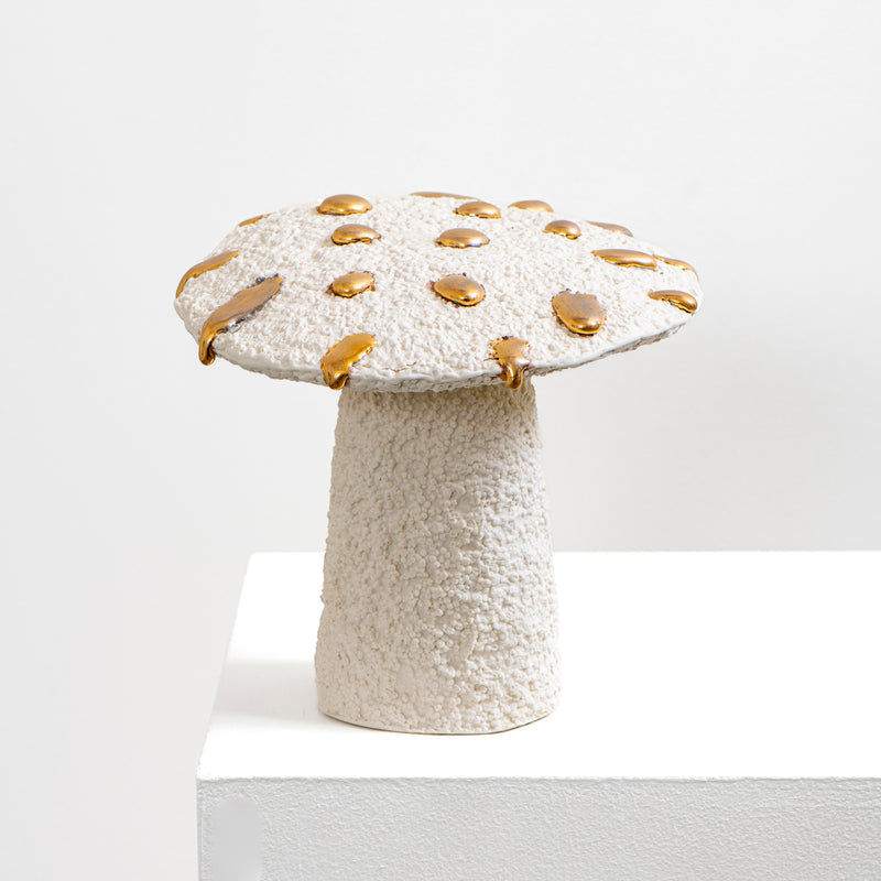 The bio-morphic objects she creates are initially carved from disposable materials such as foam and cardboard, then translated into ceramic. Something is gained in this translation, somehow more than the evidence of the process.