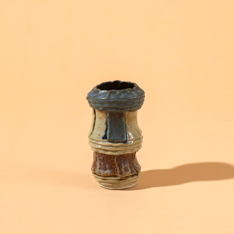 "'Reverie' explores the idea of poetic daydreaming as a generative space of creation. The ceramic works were imagined and hand built with clay as joyful meditations. Using pinched coils and slabs, the gestures of making formed textured surfaces for the glazes to gather, form rivulets, and pool in crevices and impressions left by my fingertips. Through contemplation and repetition, the process of making became a dialogue between my inner landscape and the physical world, between fleeting thoughts and lasting form."