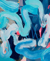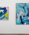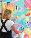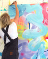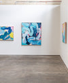 “The works that I have created for the Summer Projectsexhibition further my investigations into the immersive act of painting and colour study within my expressive studio painting practice. Chromatic intensity continues to pervade my work. Giant liquescent gestures sweep, marble and drag across the canvas surface as I build layers of paint on canvases that are laid across the studio floor. Colour is poured, swept, pushed, splattered and sprayed; and again, translucent washes are layered, worked into and rubbed out; paintings are stapled to the wall, analysed, removed, placed back on the floor…”