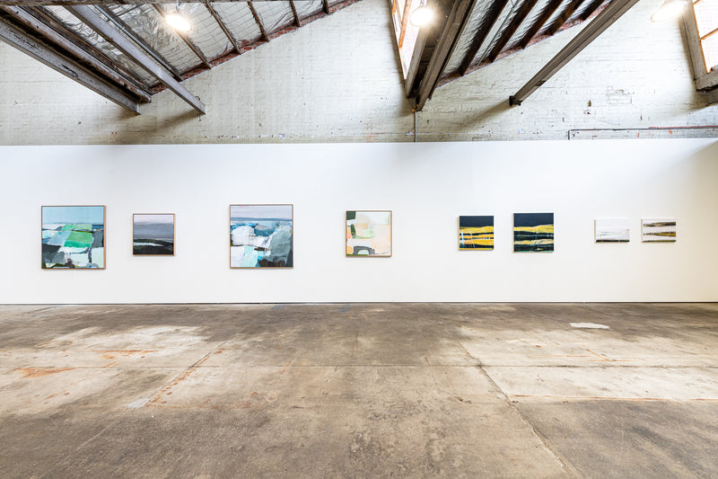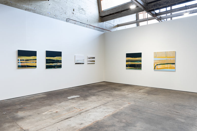 I’ve also continued to use lineal elements in my work because I can’t help but see ‘line’ everywhere. The horizontal and vertical, the distinct and obvious, the subtle, muted and restrained, the hard and soft, line that slowly disappears or line that dominates. So naturally, I gravitate to the roads, tracks, fence lines and divisions of land and bordered edges seeing these as almost like footprints representing the worked land, layered and marked, scarred."